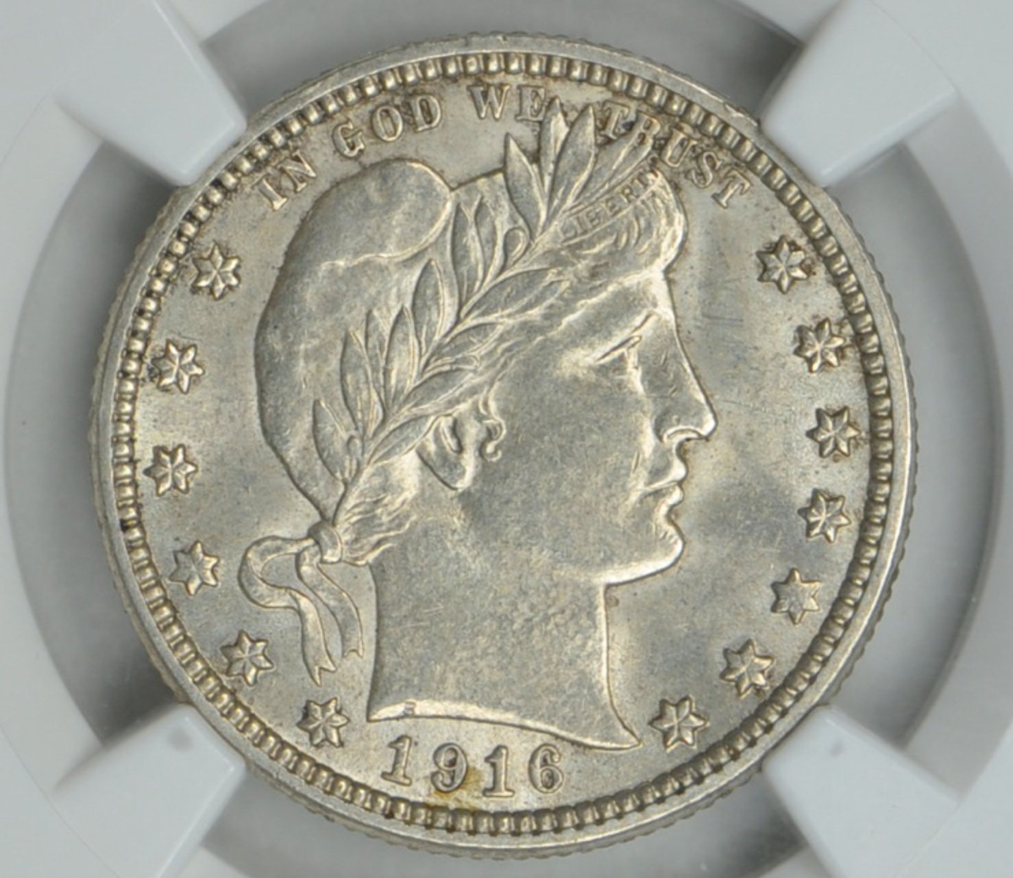 Bear in mind that in most series, a 62 mostly means a coin that is genuinely uncirculated and not ruinously ugly but has something compromising its appeal in one way or another. Previous posters have identified those factors in your MS62 Barber quarter, which on the other hand appears to my eye to be mostly pretty well struck and fairly free of marks for the grade. Here are some other graded 62's of the same issue (obverses only), images from Great Collections archives: