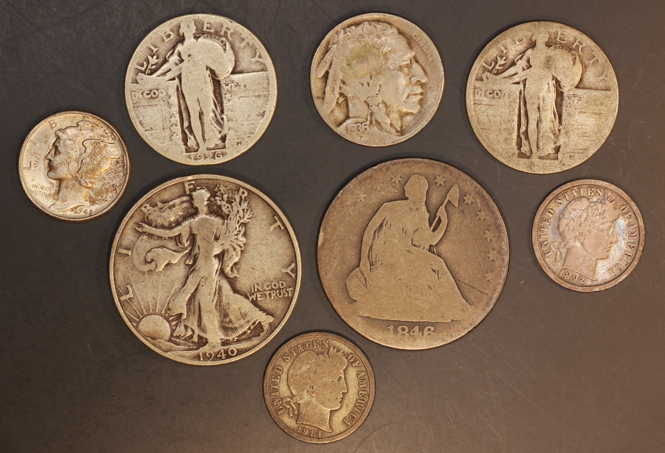 That's a nice AG-3 1846 medium date seated half. That would go for $20-30 on eBay. The 1892 dime is worth more than melt as well.
