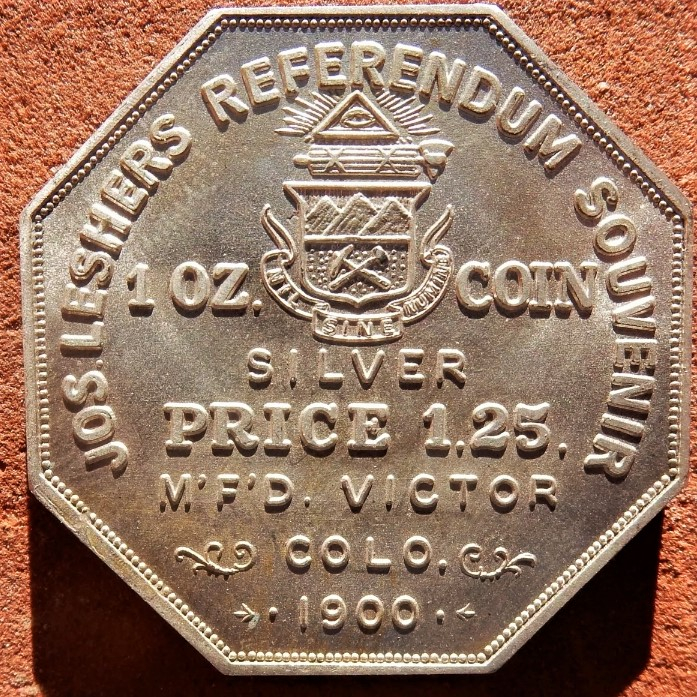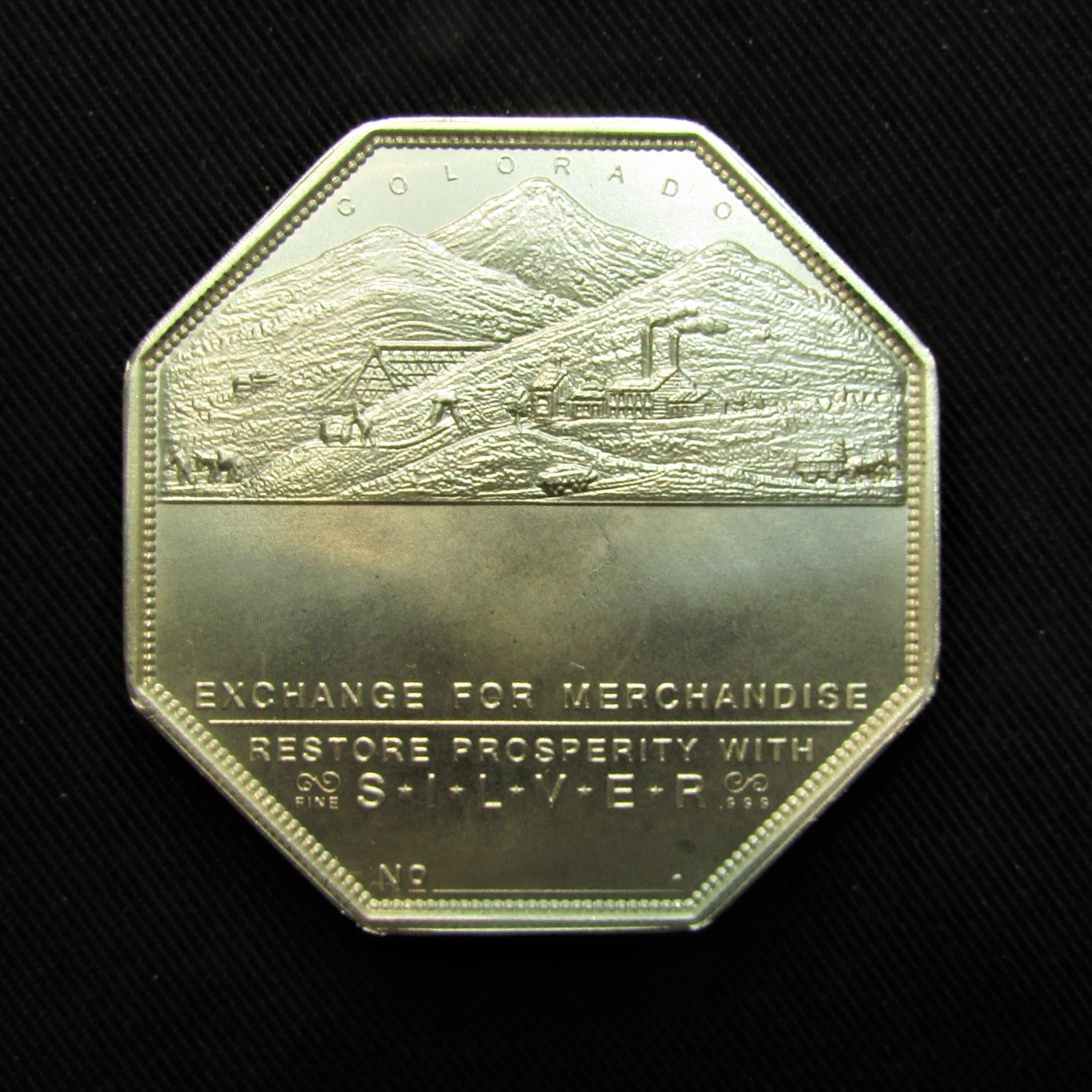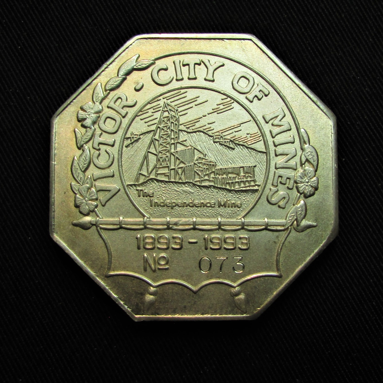 This one has the "Victor - City of Mines" reverse. It looks to have been struck in 1993, is serial numbered, but other than that, I really have very little information on it's origin, why it was produced, by whom, and how many were made.