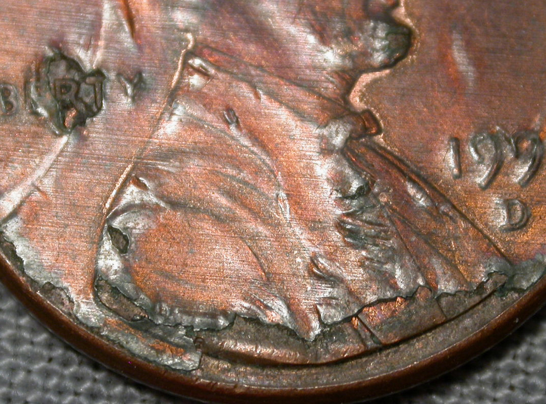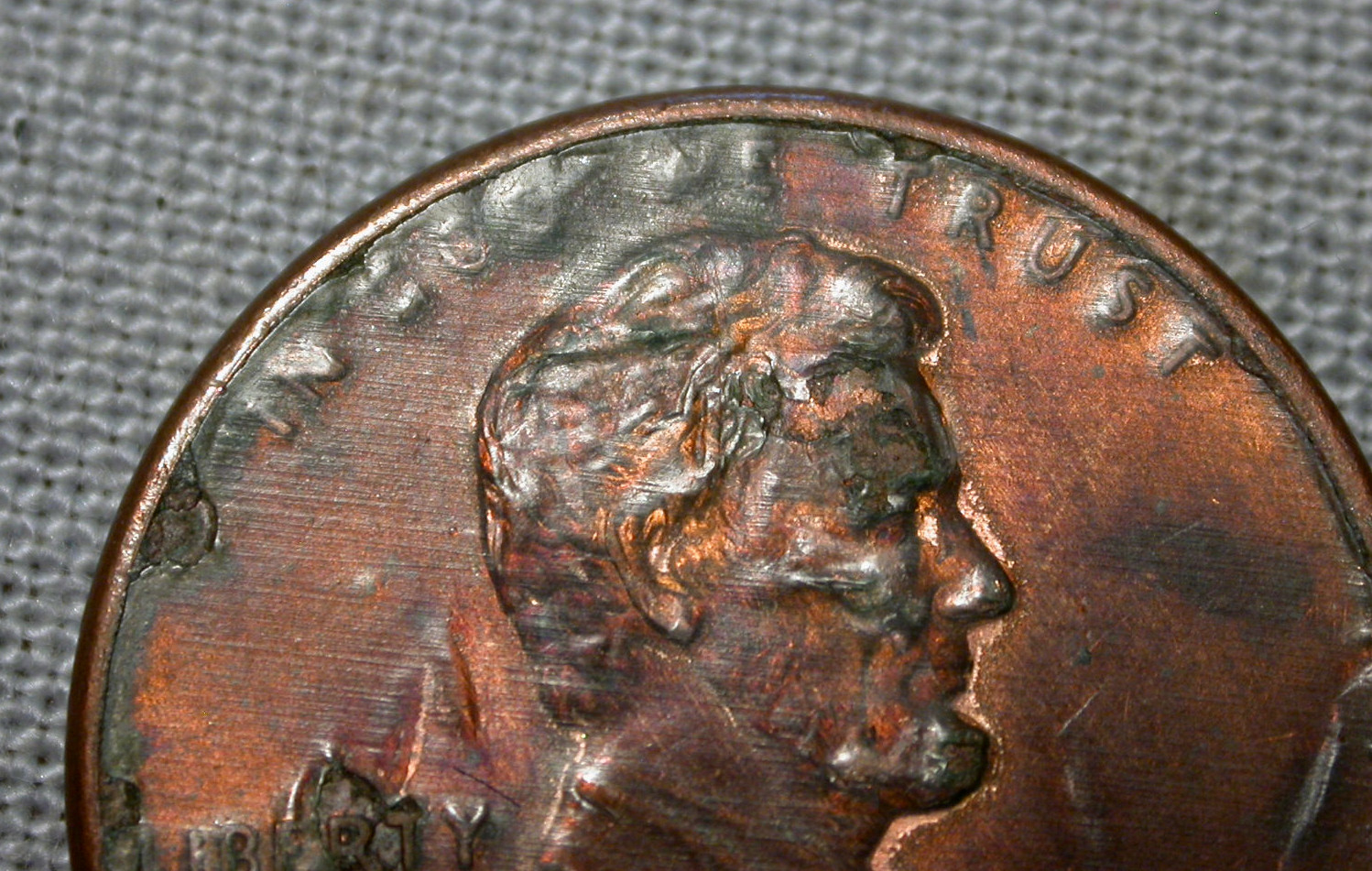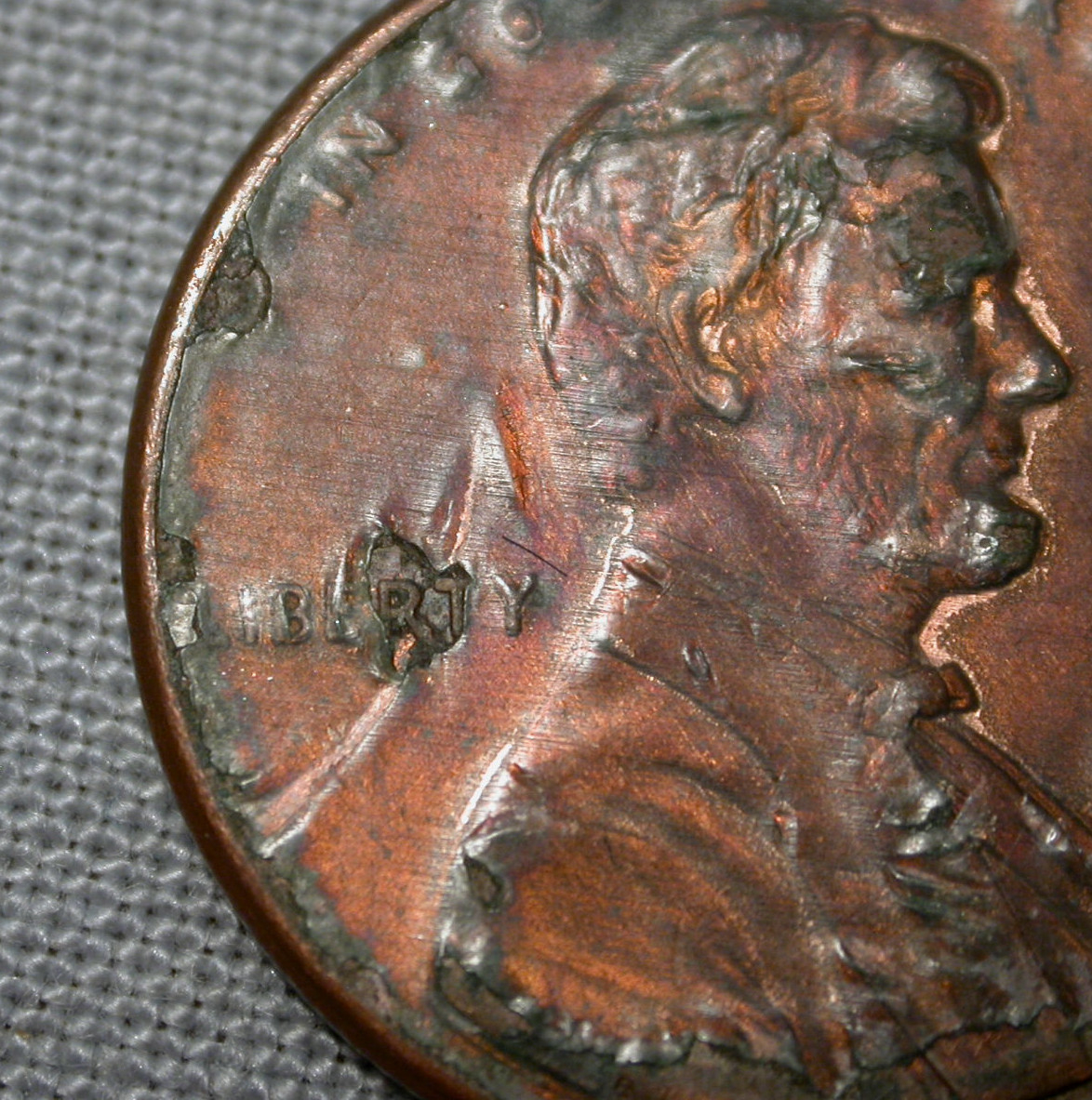 I also notice the coin under the layer appears to be SHARPER than the top layer. (as seen in LIBERTY). A coating of some sort? Perhaps intentionally coated with a metallic substance of some type, in an attempt to 'create' an error? There are some rather fine lines observable on the obverse.