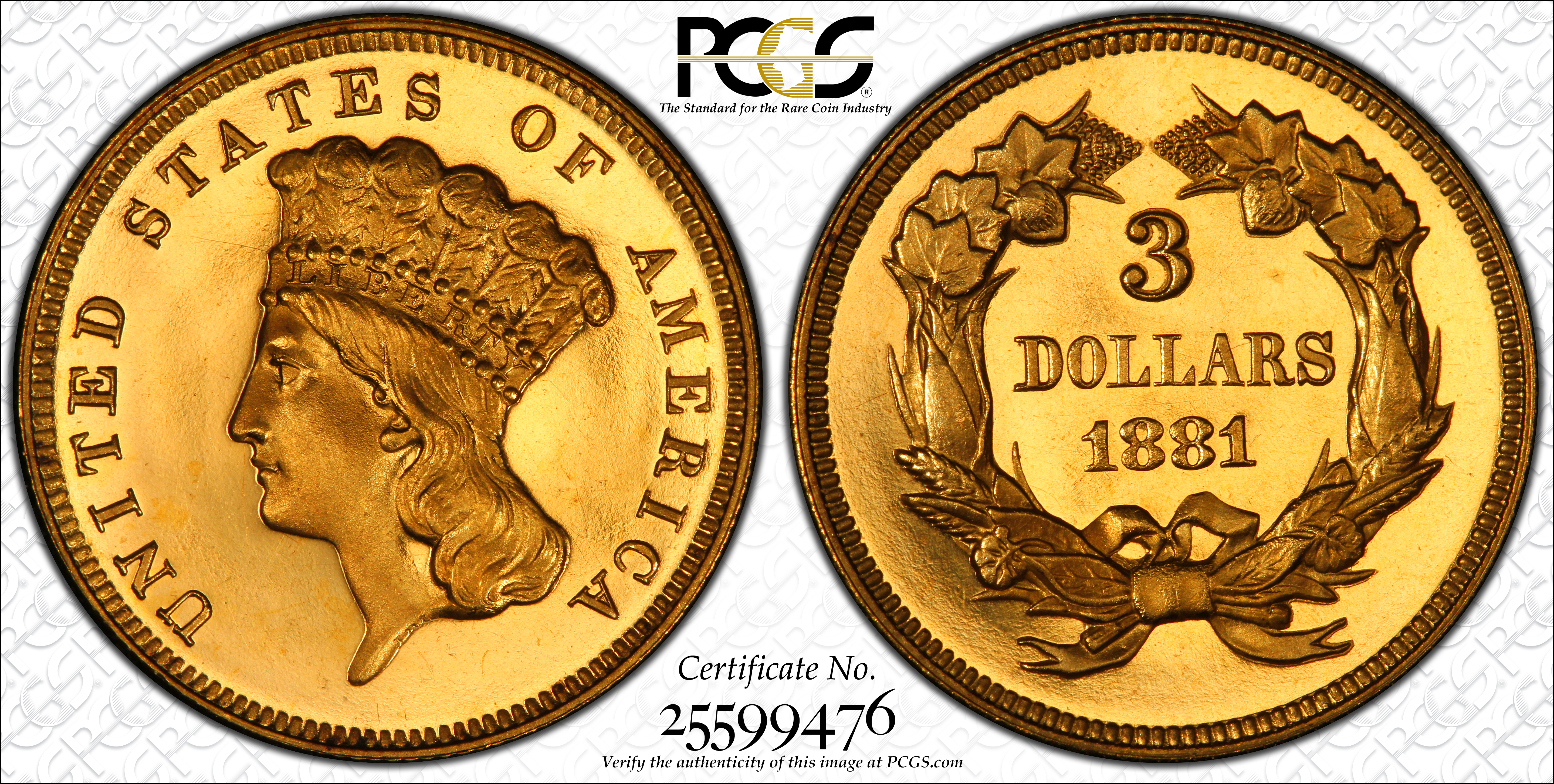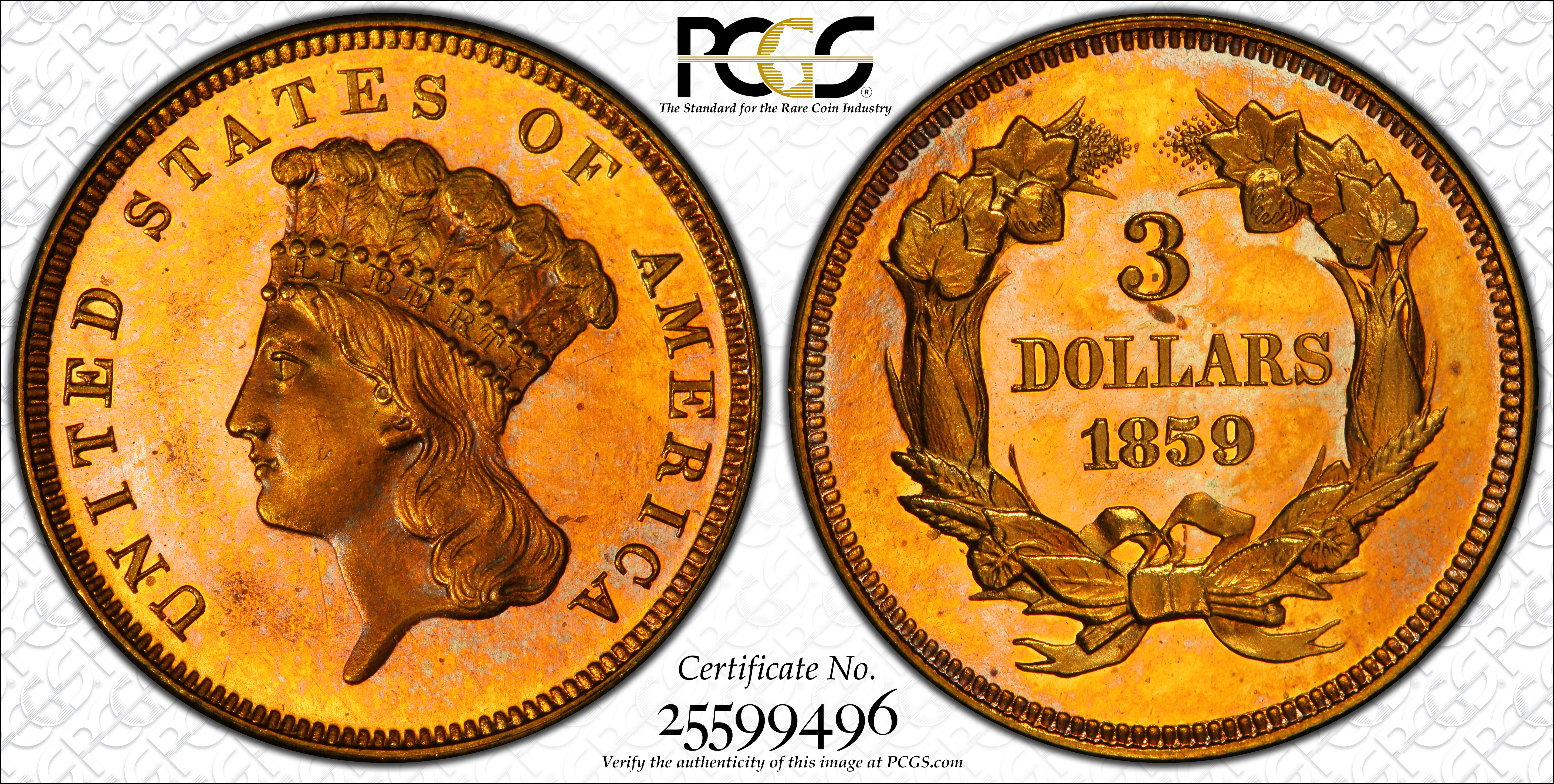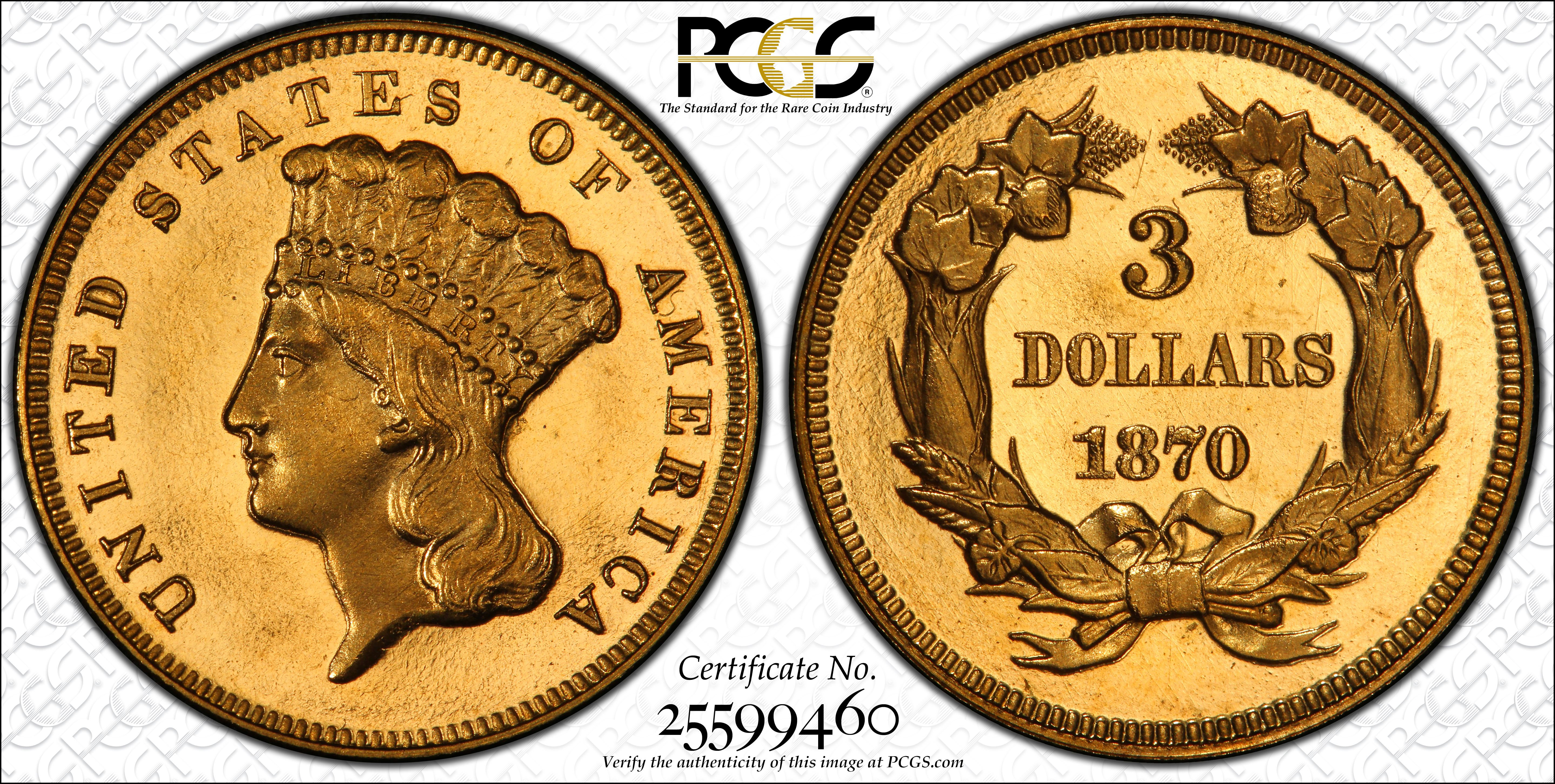 3. PR66 Cameo NGC. Jewett Collection (S.H. Chapman, 6/1909), lot 909; John H. Clapp; Clapp Estate (1942); Louis E. Eliasberg, Sr.; Eliasberg Estate (Bowers and Ruddy, 10/1982), lot 283; Ed Trompeter Collection (Superior, 2/1992), lot 101; American Numismatic Rarities (3/2004), lot 1377; Bowers and Merena (2/2007), lot 701; "Kupersmith Once in a Lifetime Collection" (Bowers and Merena, 11/2010), lot 5003.