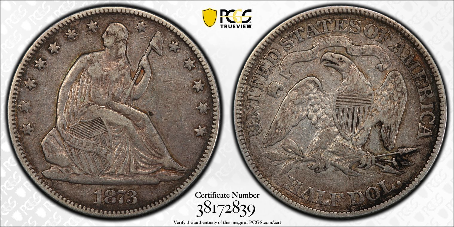 1873 Seated Liberty Half Dollar NA Open 3 CAC