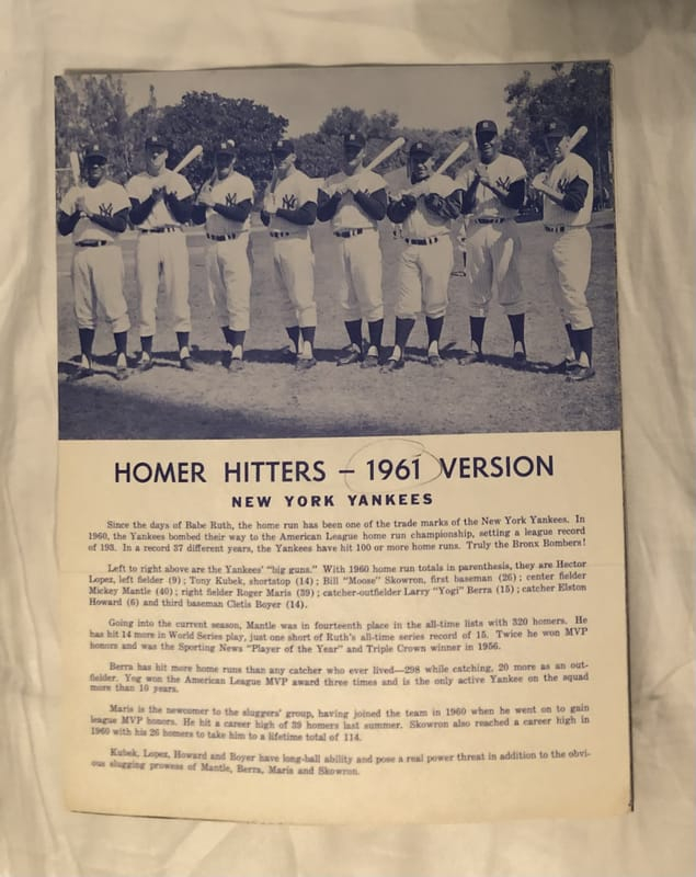 1960 New York Yankees Trifold - Yankees Team