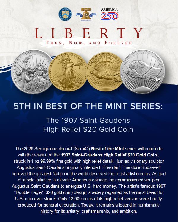 This leads to the 250th anniversary gold coins the mint will be releasing next year. So far they have announced this will include five gold coins (called Best of the Mint):