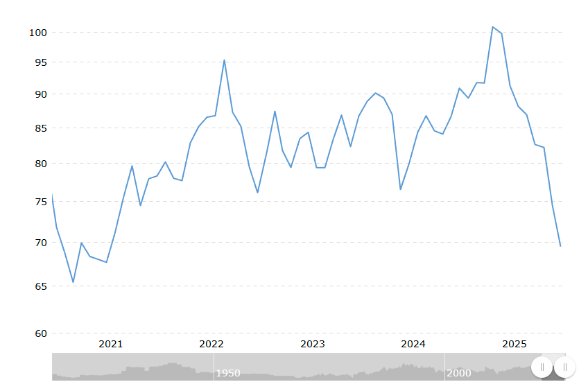 Down from 69.46 one day ago. A regression towards the mean continues........
