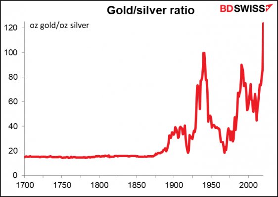 Silver was demonetized years ago and the gold/silver ratio has little meaning.