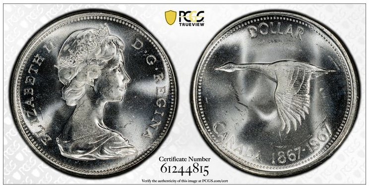 Dollar (23.33g, .800) Confederation Centennial commemorative. Circulating and proof-like.