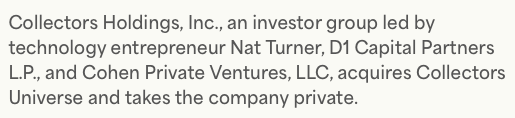 Unless I missed something, PCGS is part of Collectors, and Collectors is currently a privately held company.