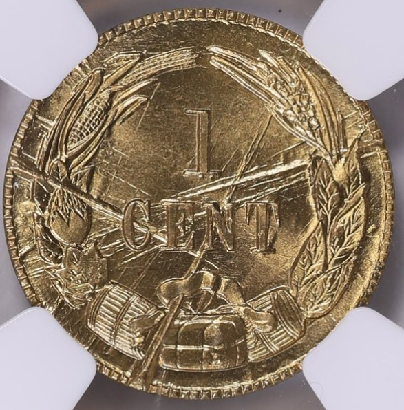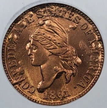 1861 (1961) Confederate States of America Cent Bronze/Copper/Goldine Bashlow Restrike With Defaced Dies sold on GC
