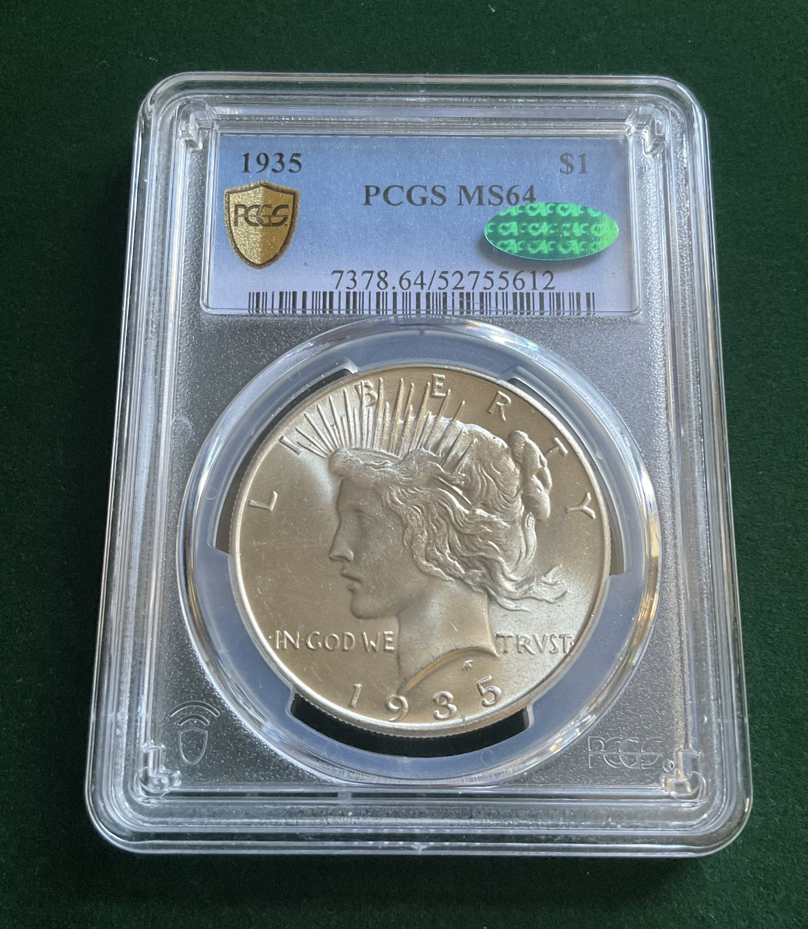I was strolling the bourse at the FUN show this January and this lusterbomb Peace dollar in an OGH shot a beam of light that captured my eye. So it had to come home with me. Sure, it’s a common date, but nice for a Type coin.