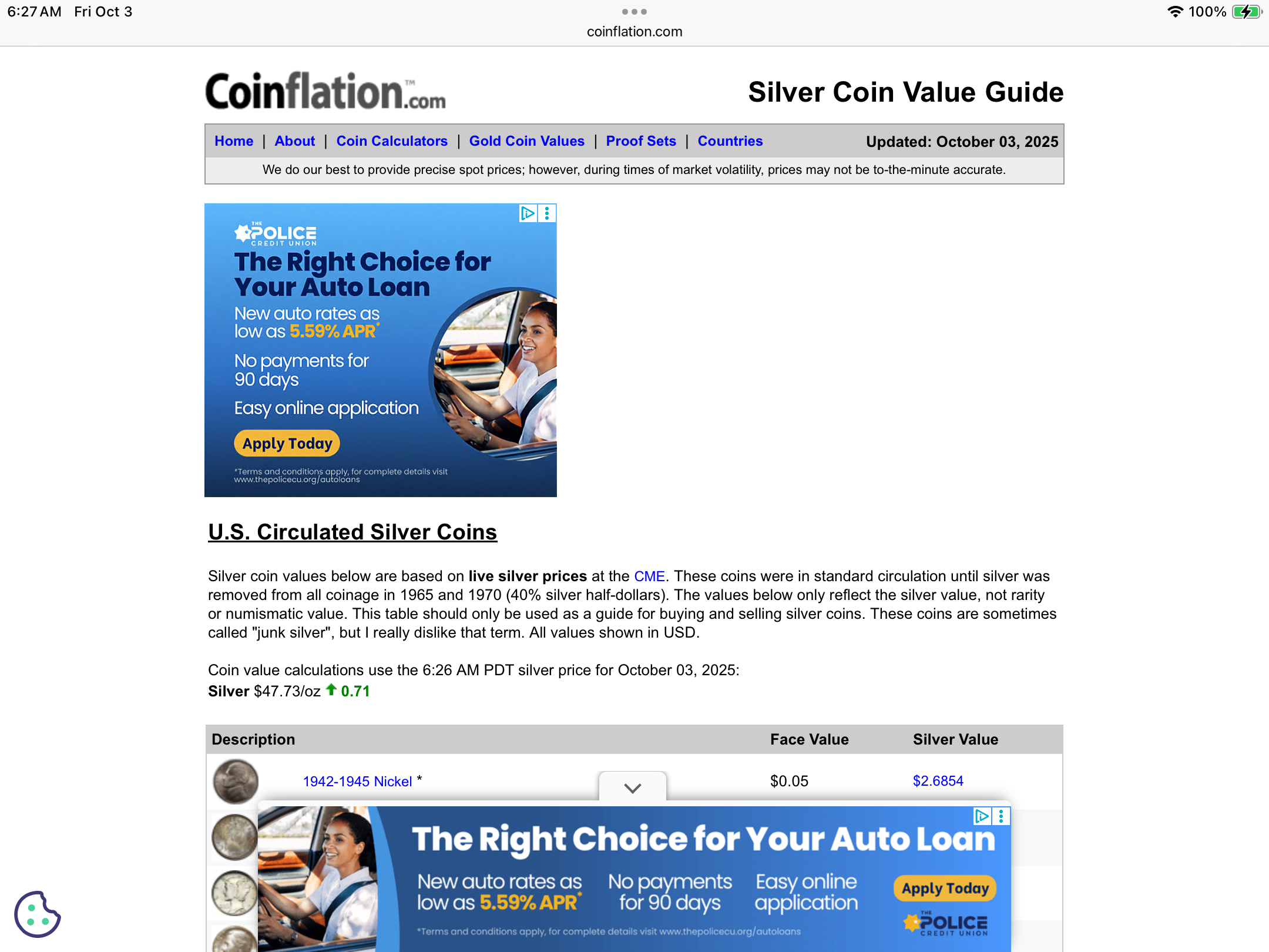 • Current Melt Value: 14.464 × $47.73=$690.37 (based on silver at $47.73 per oz)