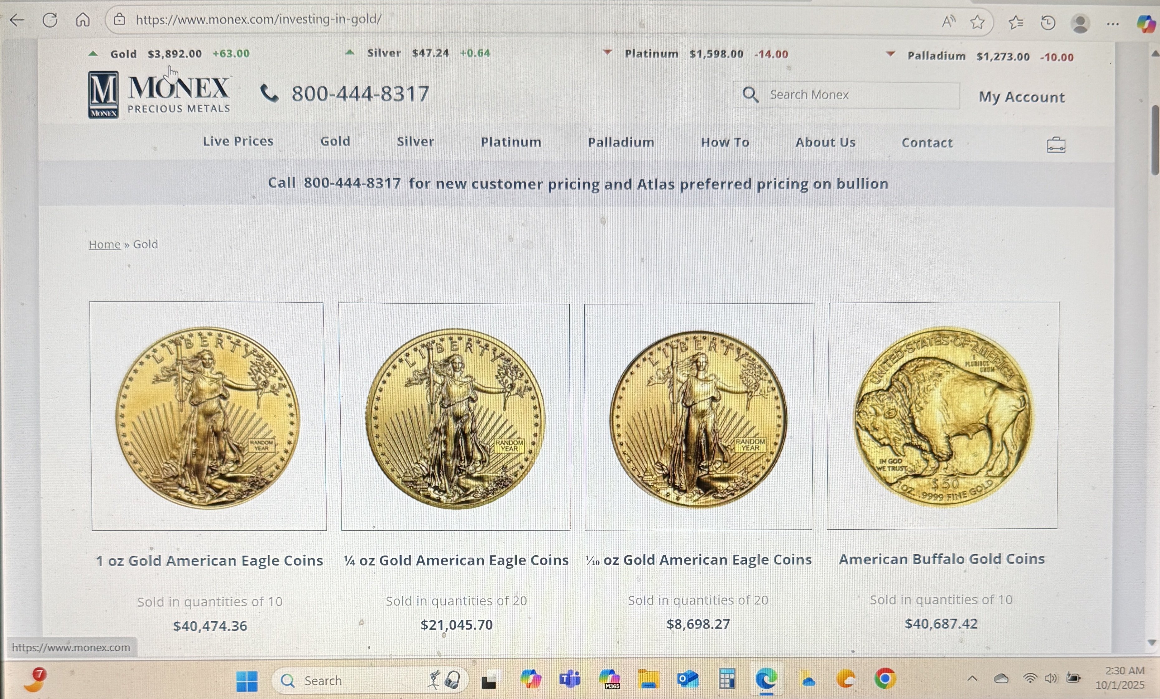 In meantime gold now 3892 today October 1st 2025.