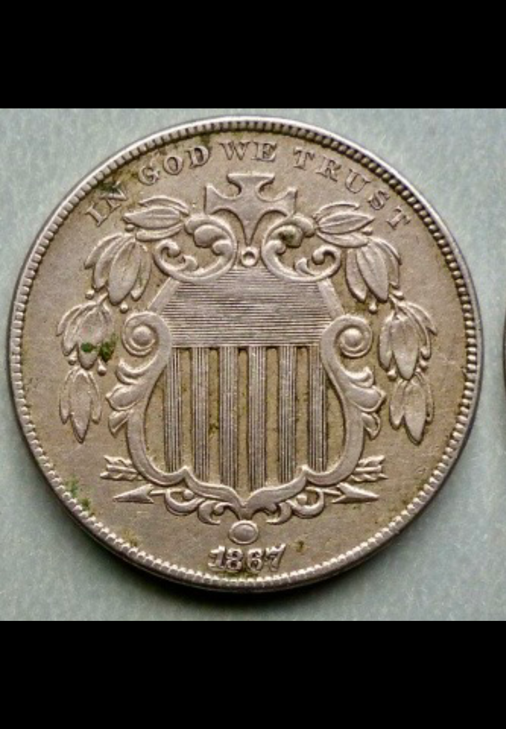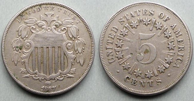 Can anyone help me identify this 1867 shield nickel with rays?
