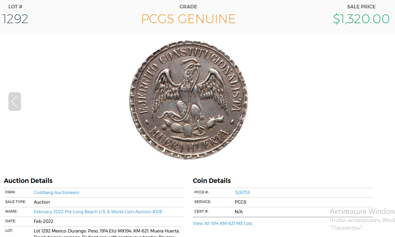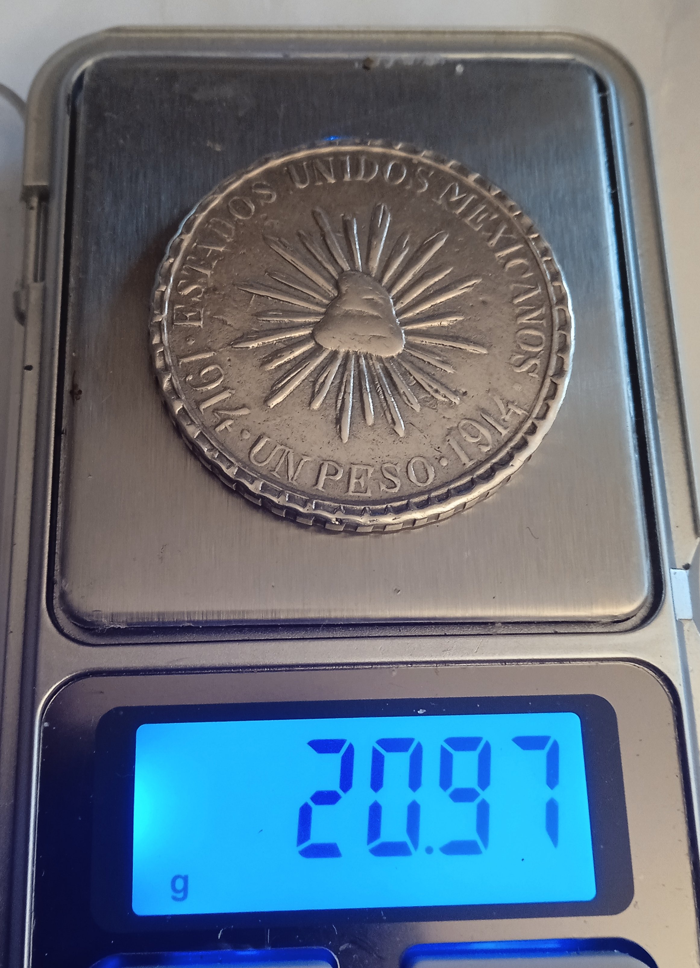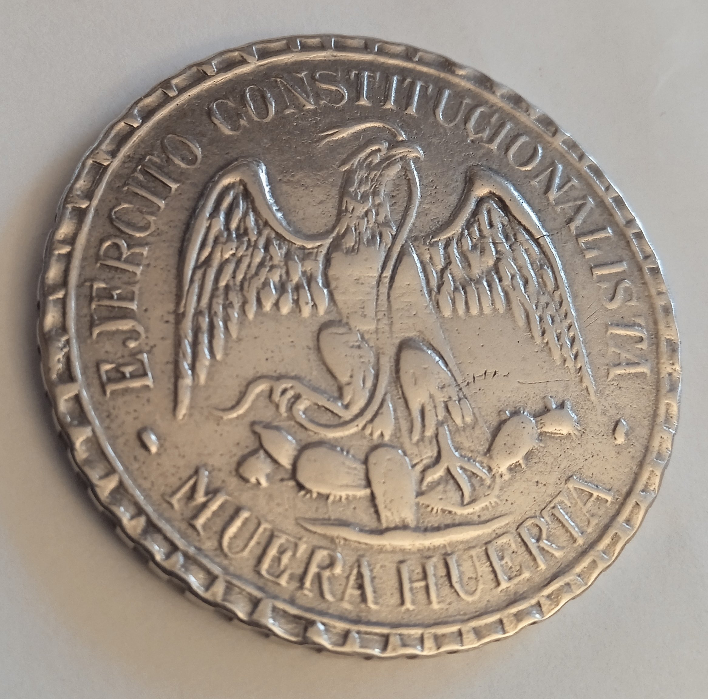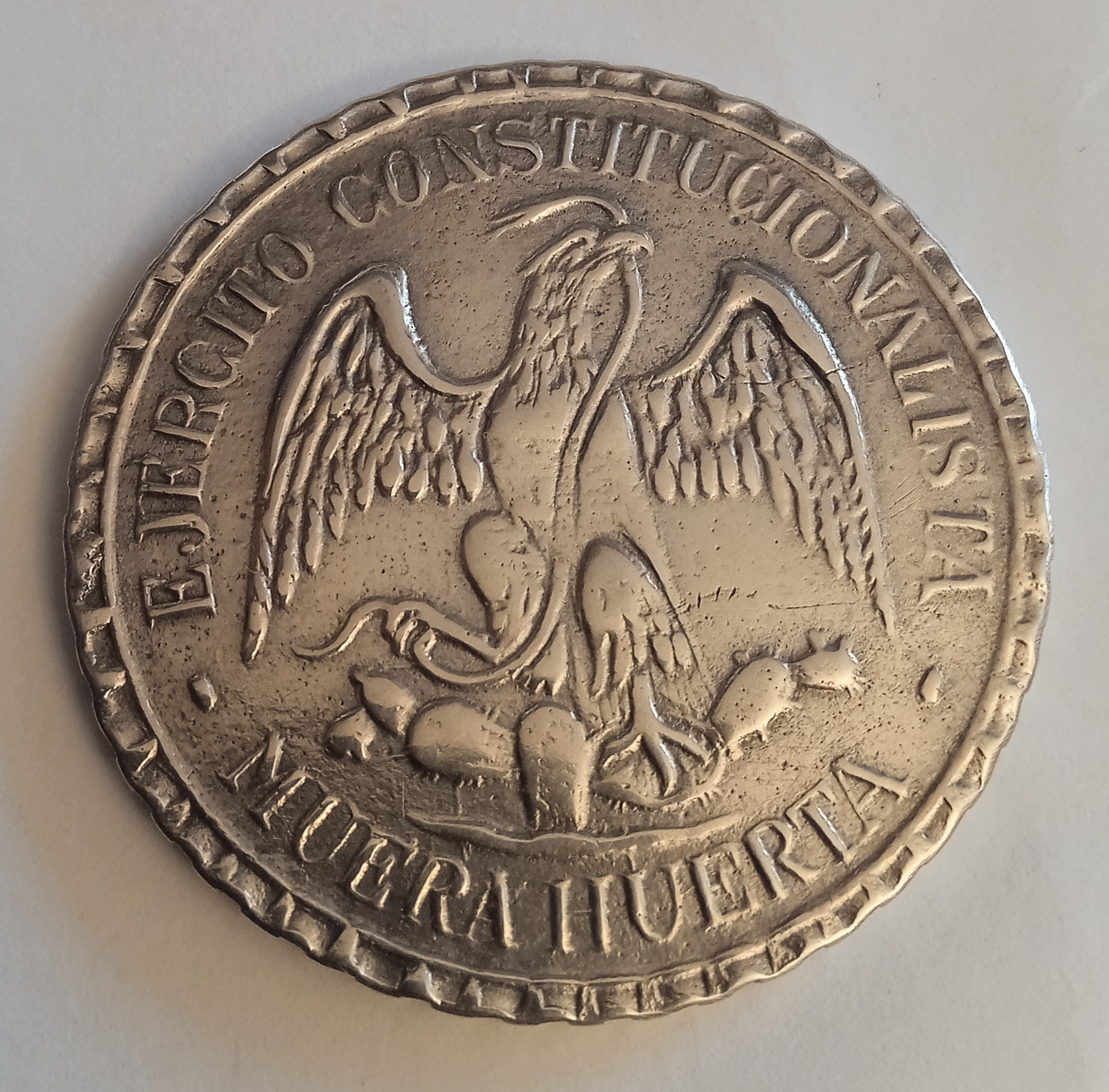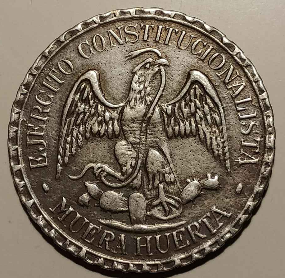 Two more strikes against the coin is that it doesn't so much ring as clunk when dropped on the desk and legitimate MH pesos typically exhibit faint raised circular alignment rings for punching the legends (see the last photo in my previous post).