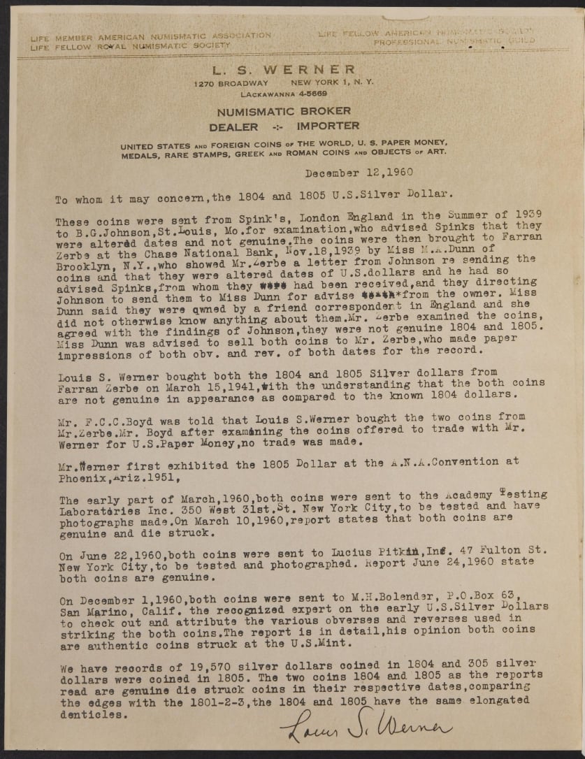 Was interesting to find that long before his 1962 "King of Siam" reveal, Spink’s firm had a checkered history going back to 1939 with 1804 & "1805" dollars: