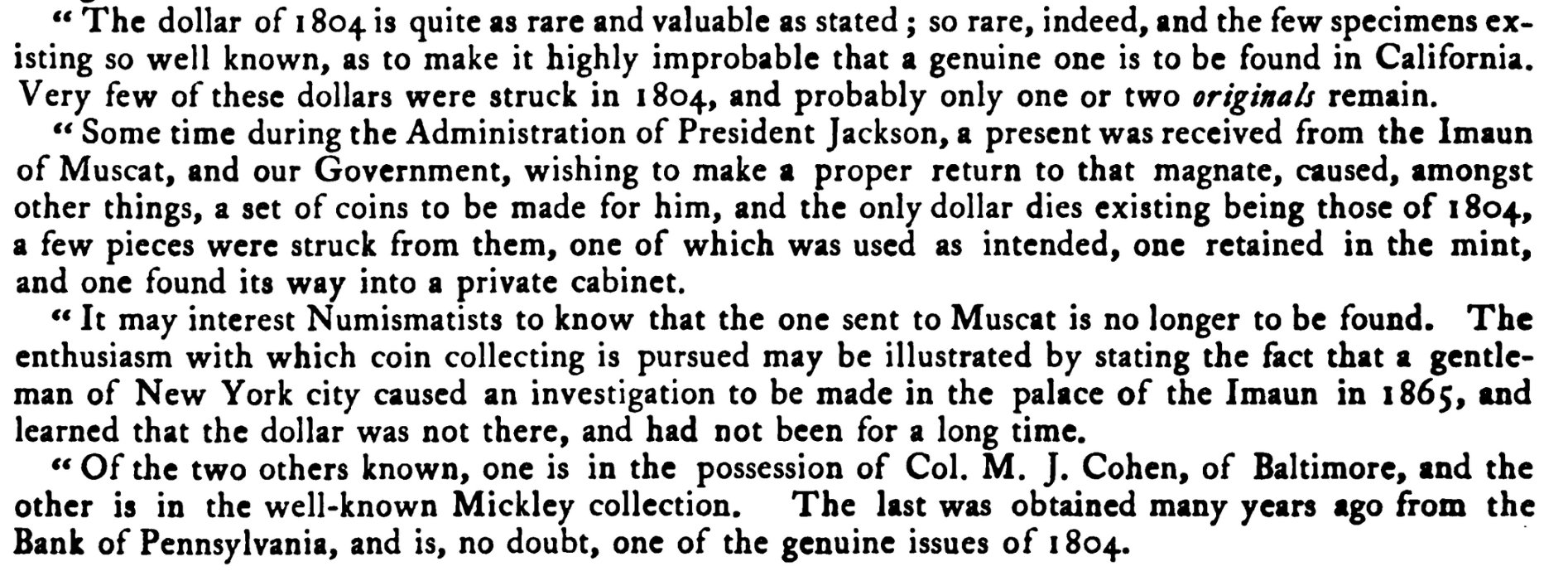 Separately, and not specifically directed at/to you…. Interesting to trace the early evolving theories for the 1804 Dollar’s existence.