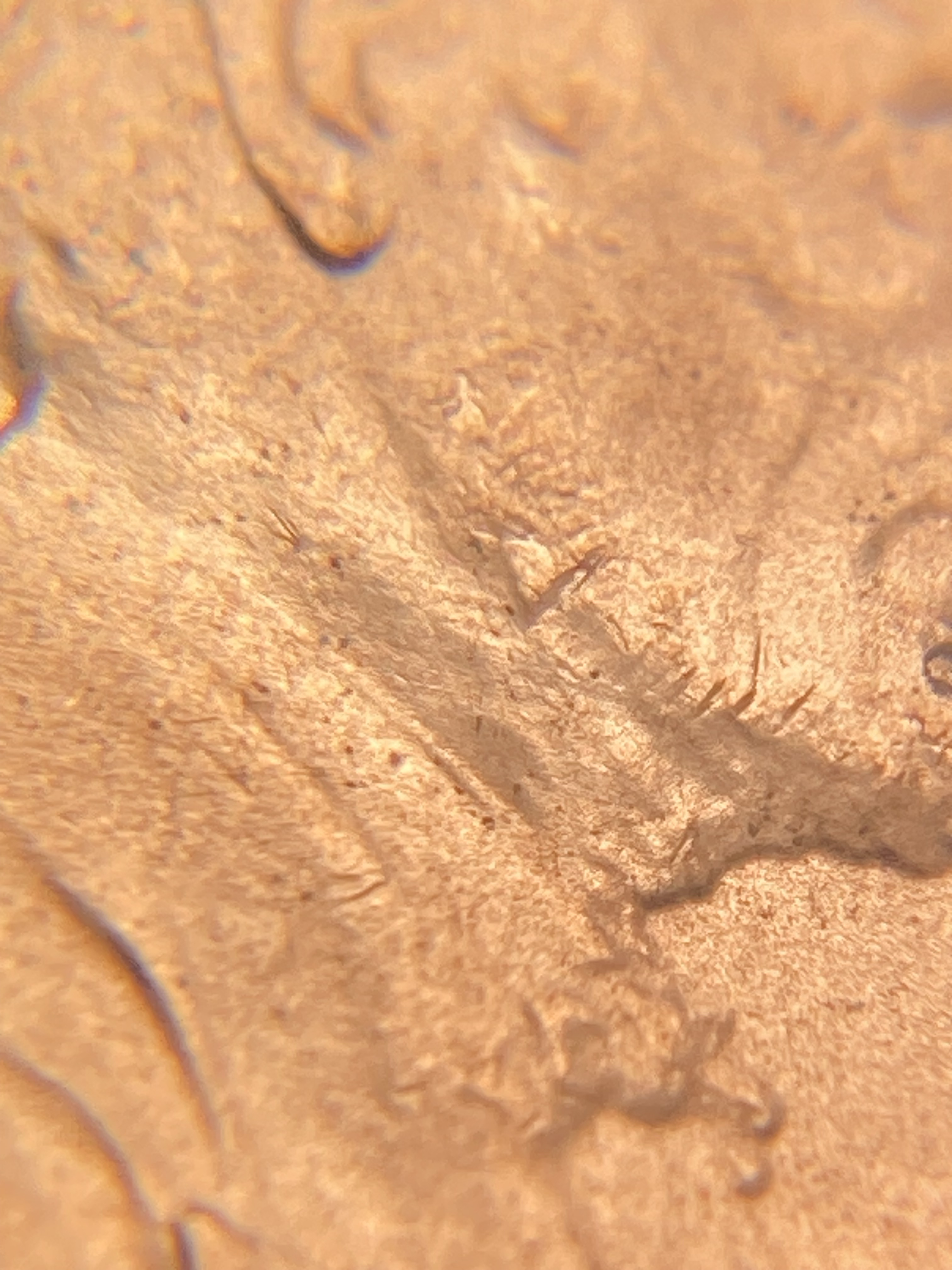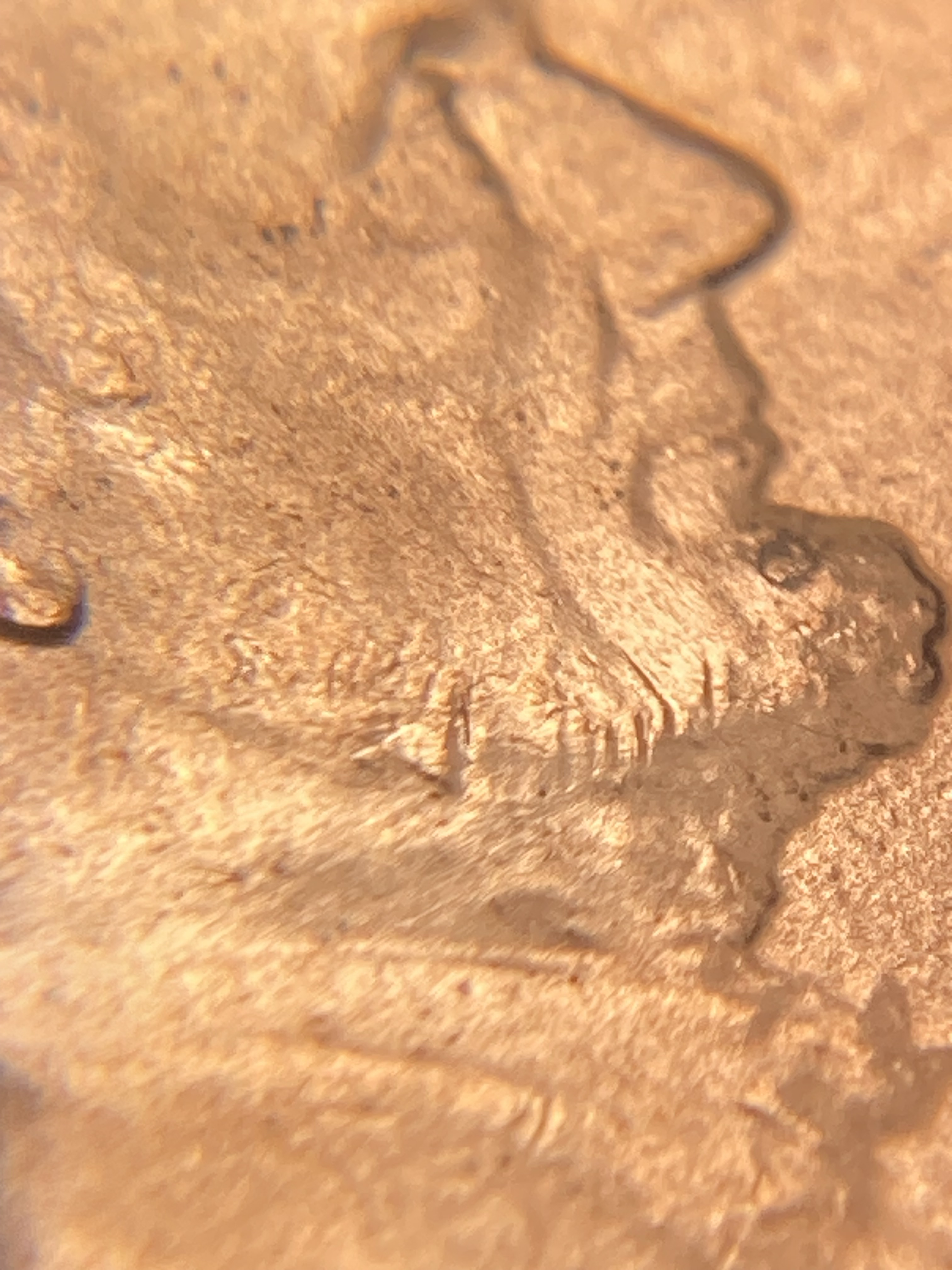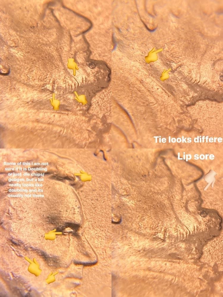 OBVERSE- Ear(half inch below ear is possible doubled ear ),Eye(inside corner, maybe even also in front like LWC little hard to pick up on cam), where the neck meets the jacket collar is a pretty thick raised line that looks like long and fat doubling for its spot(first of its kind?! | think) Date, Liberty(especially