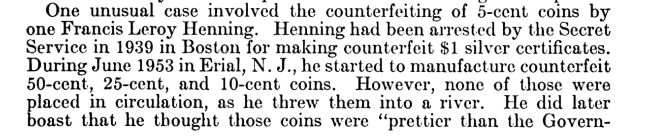 Did not know the extent of Henning’s work. Thought he devoted his special talents only to nickels! He did seem to take great pride in his work!
