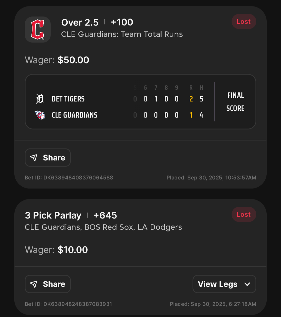 I lost $50 on the Tribe, I was going to bet the Sox but didn't