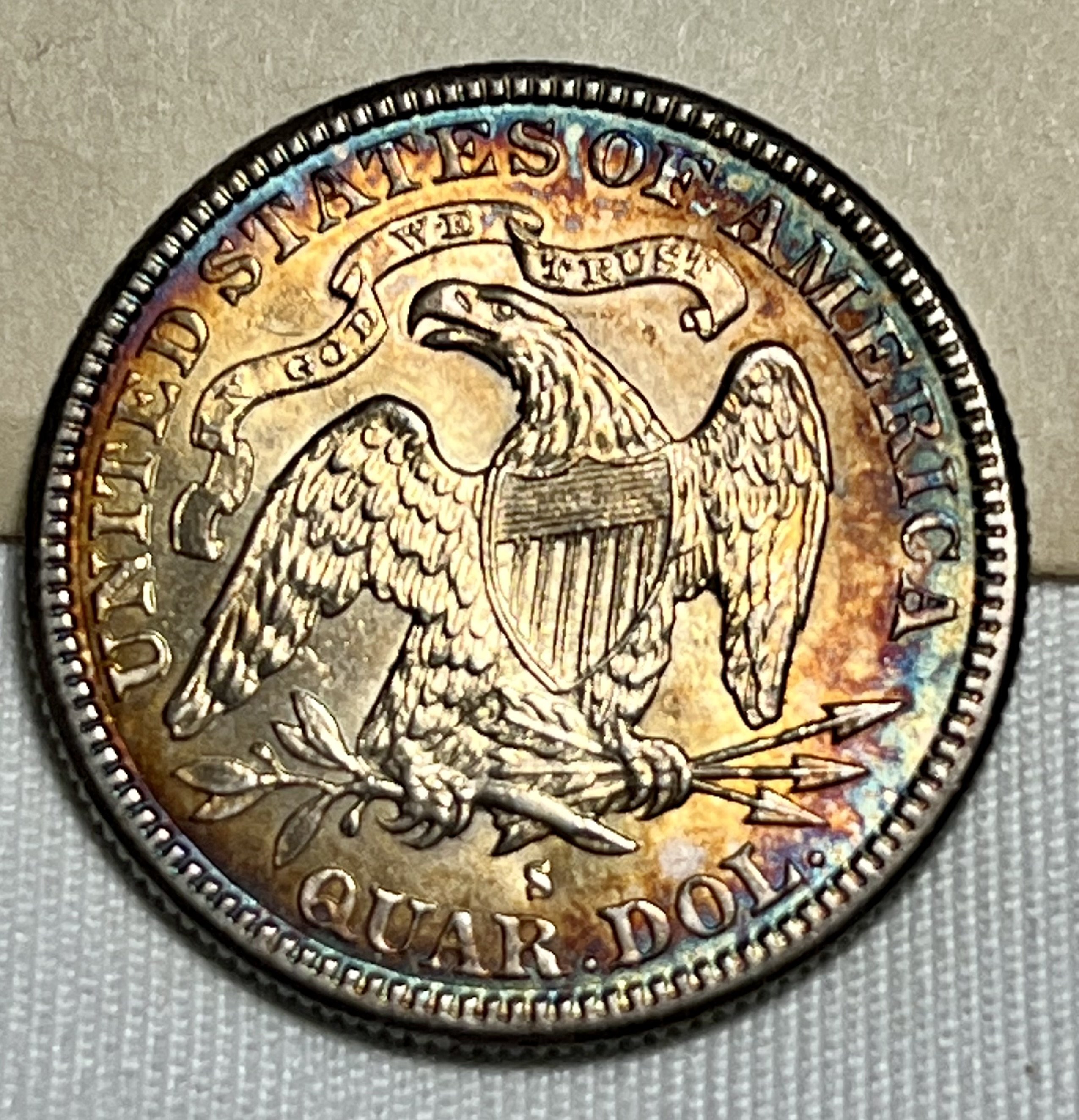 Since you like seated quarters, this is one of my faves, acquired at the Michigan State show in your neck of the woods, in the late 80’s: