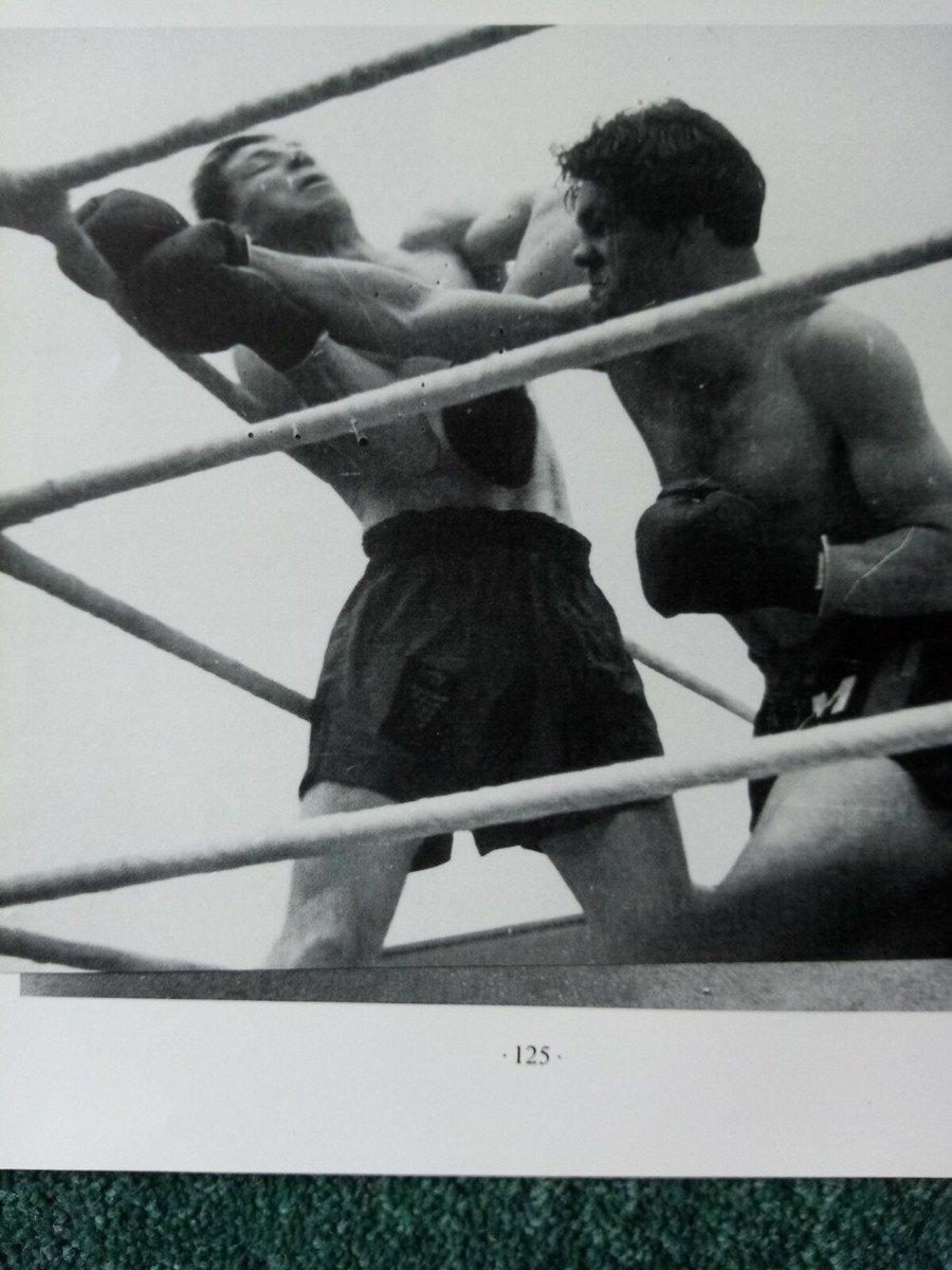 This is one of my all-time favorite boxing photos, a bloody Freddie Mills throwing a punch at Joey Maxim, Mills looks like such a savage in this photo.