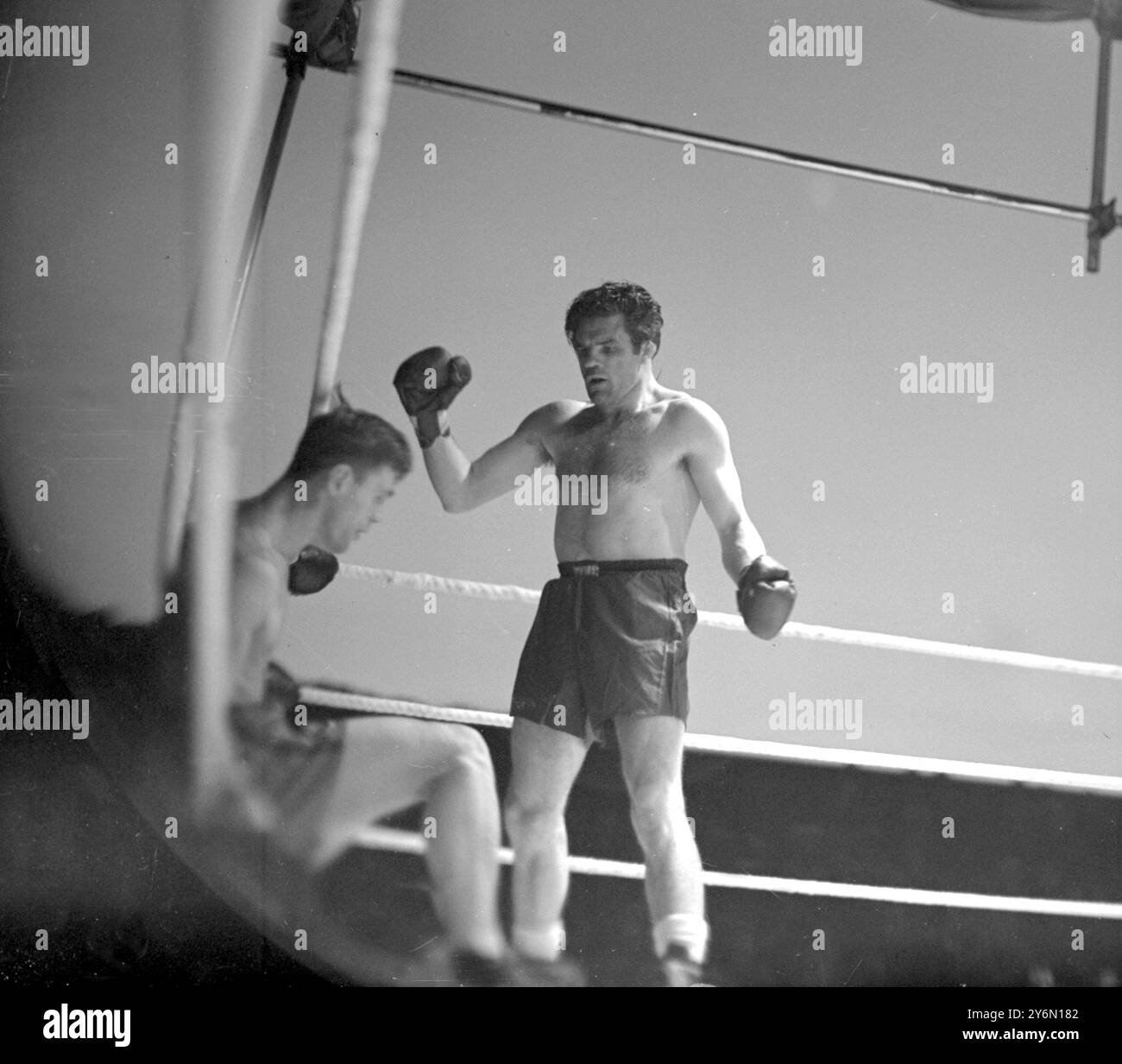Great image from Howard Winstone vs Derry Treanor, Winstone stopped Treanor in the 14th round to defend his British featherweight title.