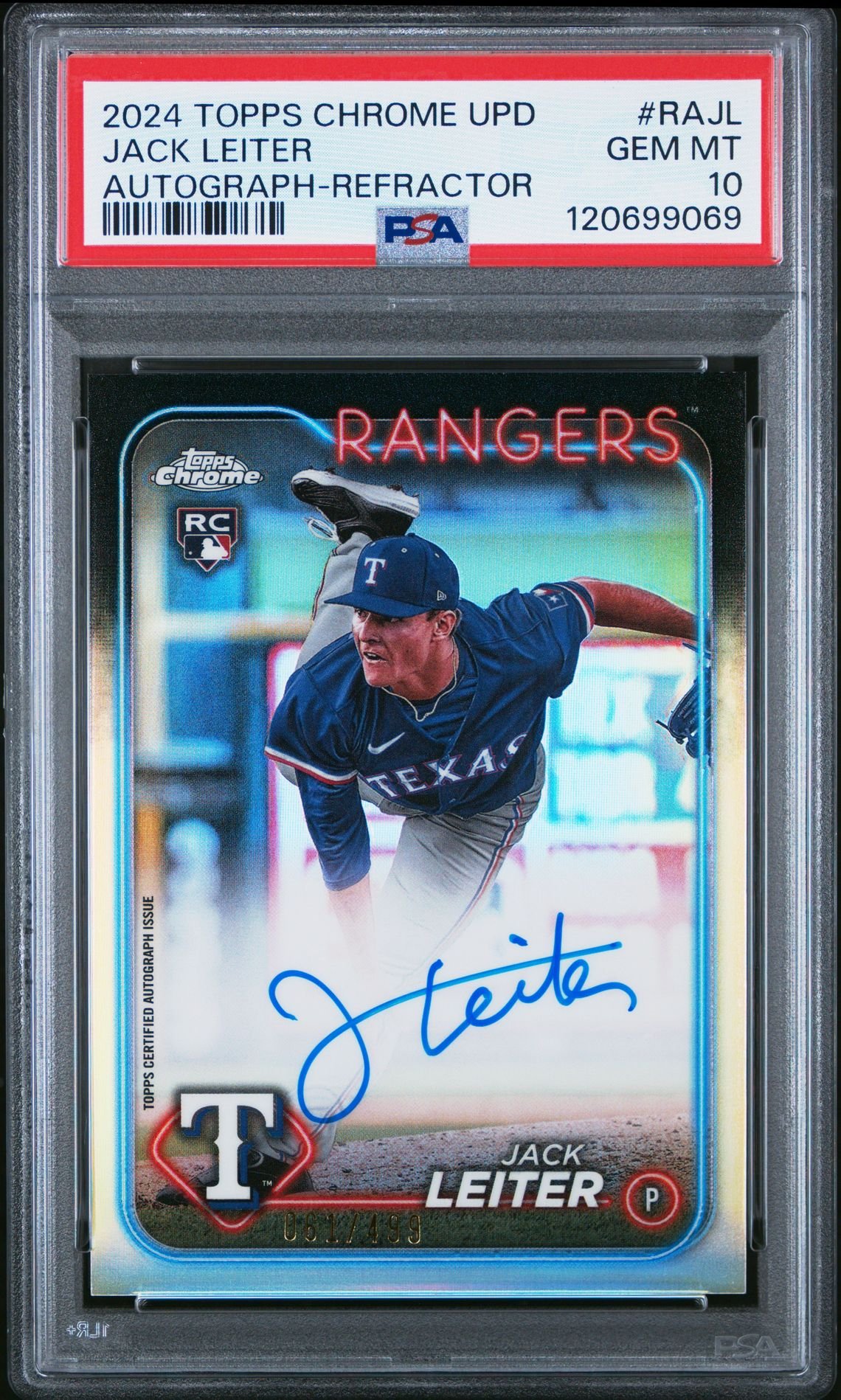 Almost all of the cards in the sub came from ripped boxes, mainly 2022 Leaf Valiant, 2024 Prizm Draft, 2024 Bowman Chrome University, 2024 Topps Chrome FB, and 2023-2024 Topps Chrome Soccer. These were the best cards from about 200 candidates. The best product was the 2024 Bowman Chrome University. All of the autographs I sent in pulled PSA 10s. The card quality overall in that product is strong. On the flip side, 2024 Topps Chrome FB had horrible quality, especially from a Chrome product that usually grades well.