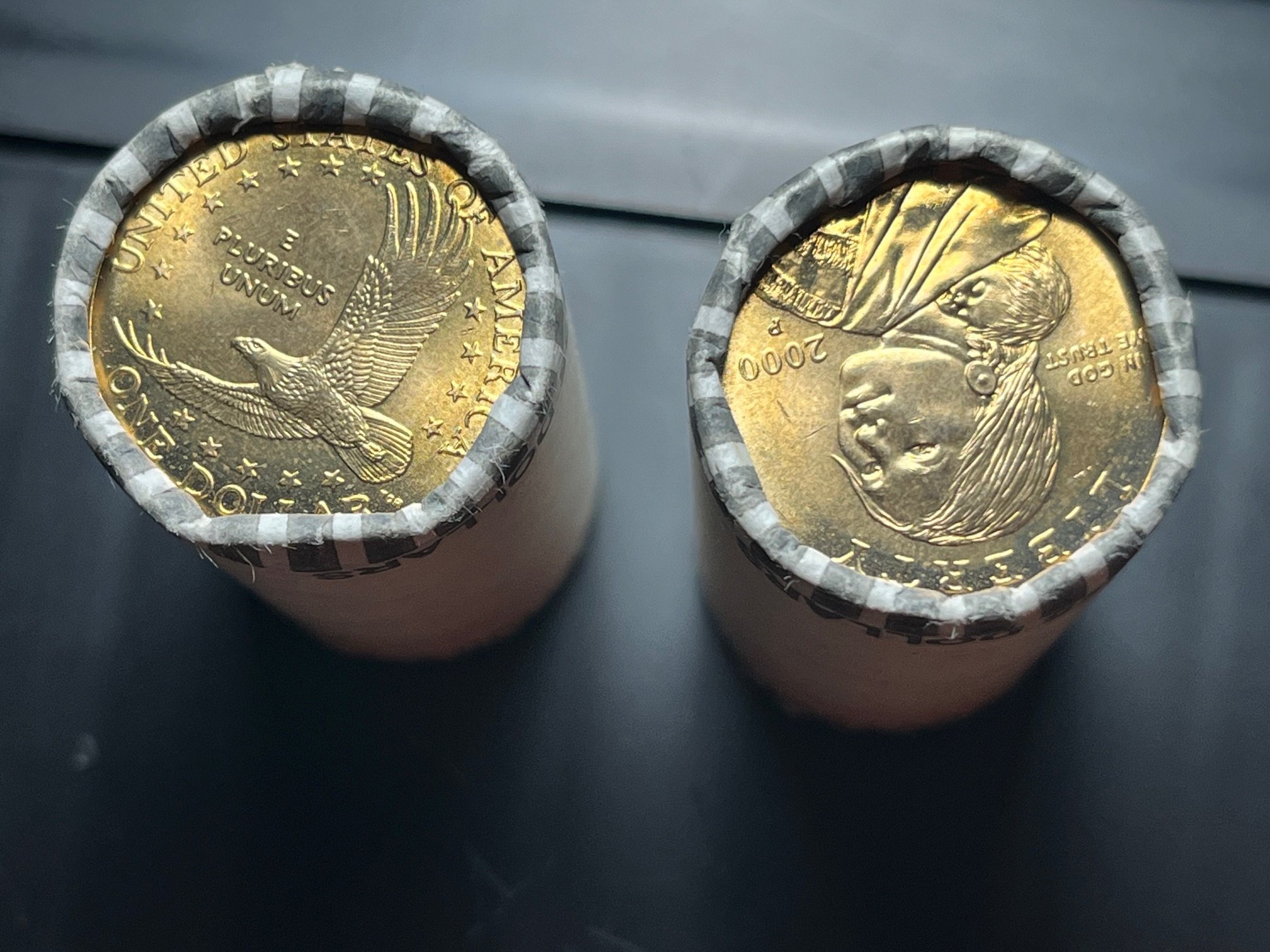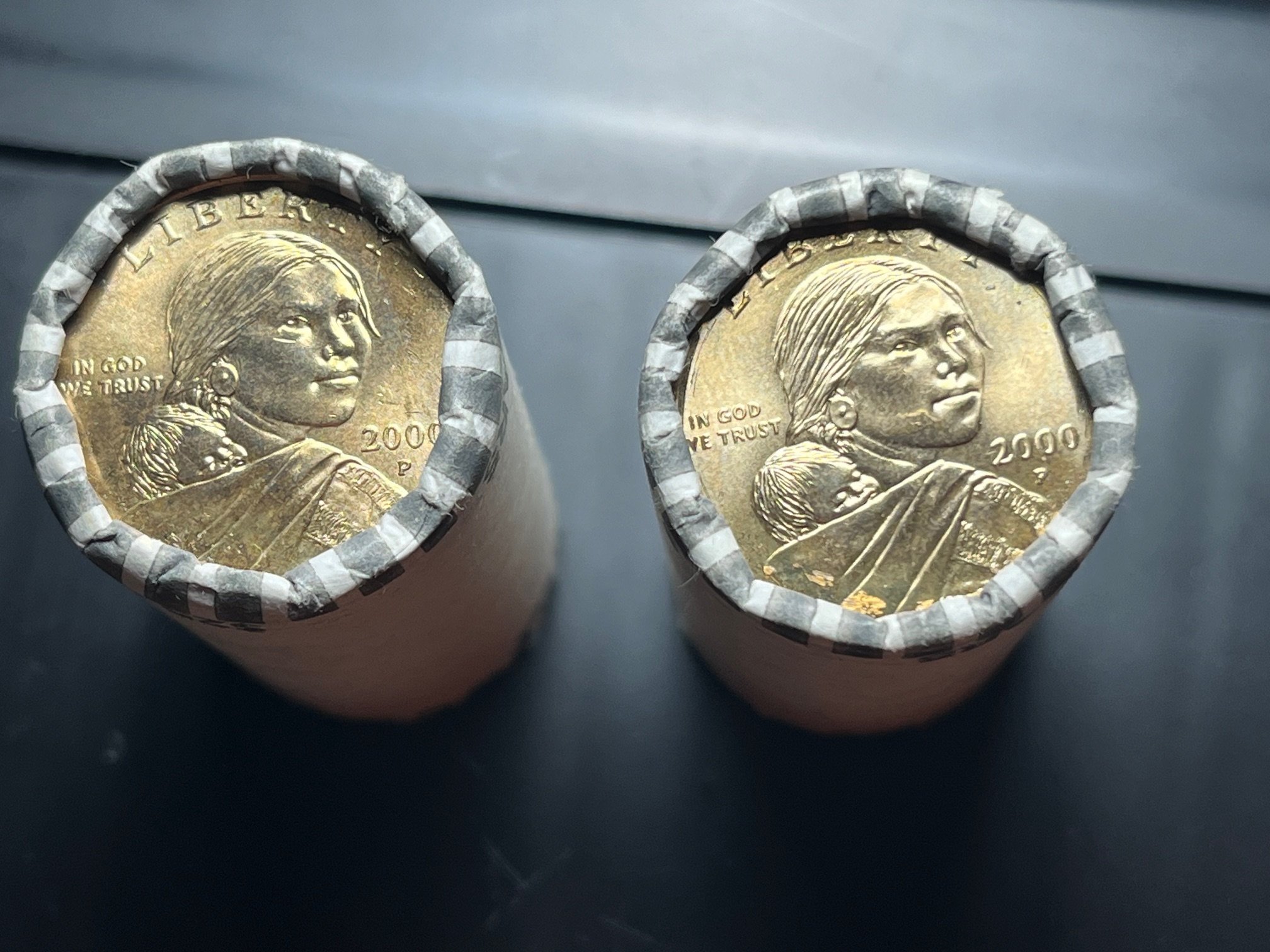 Yep! No doubt they have been sitting in these wrapper somewhere for 25 years! You can even see the gold coloring coming off on the wrappers. I got them from a bank.