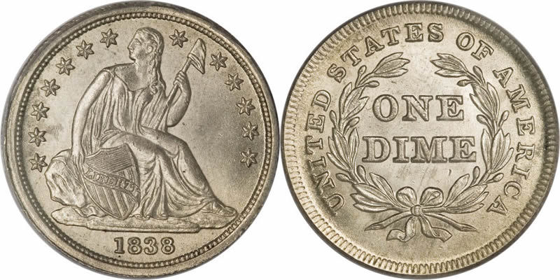 I have a 1838 Seated Liberty Dime with an upright shield and drapery at the left elbow, which both began appearing on the 1840 Dime. Why would these features be on my 1838 Dime?