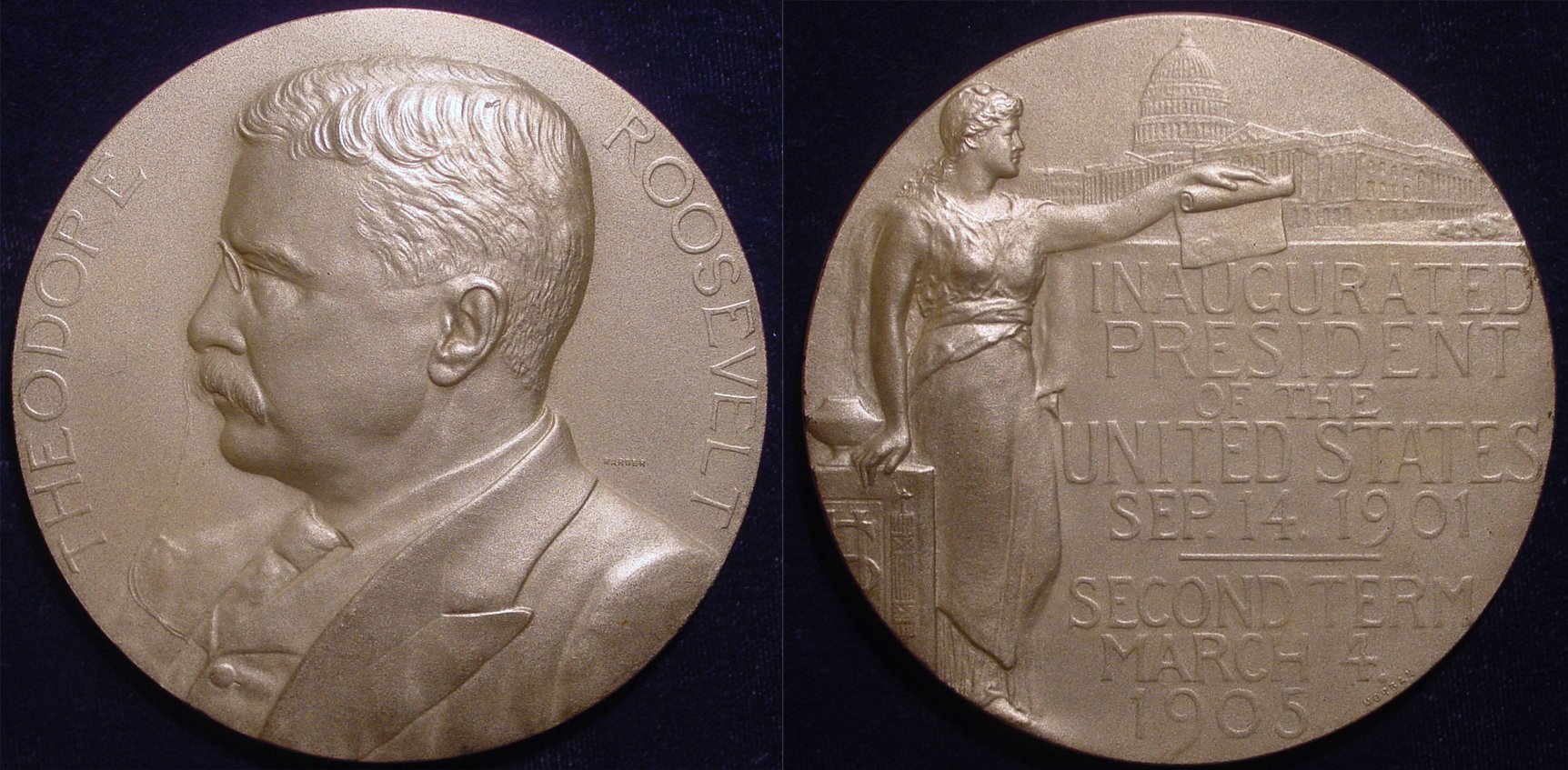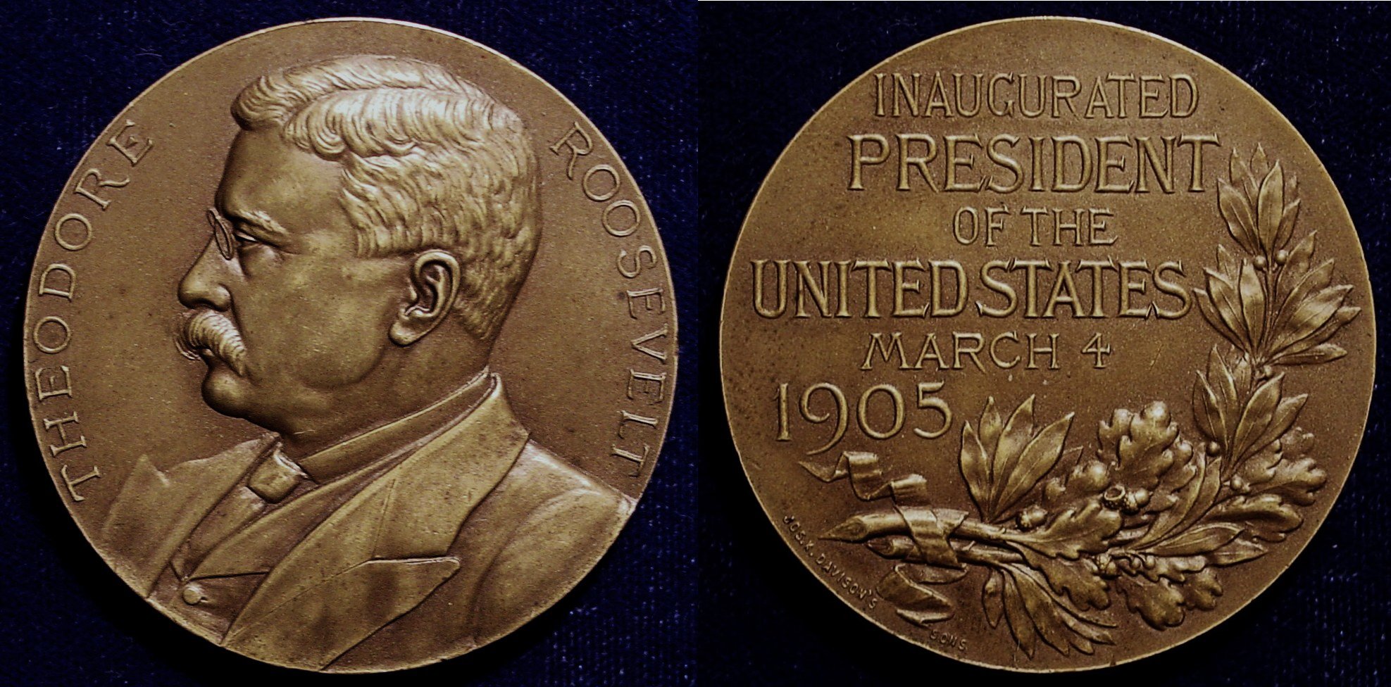 In 1905 Theordore Roosevelt had two official inaugural medals. The first one was made of Davisons who had made medals in the past. Some thought this piece was too modest. The mintage was something like 4,000
