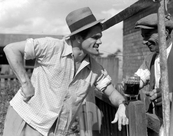 Howard Winstone (left) rolling a beer barrel at Merthyr Tydfil Brewery in South Wales, Winstone was employed there when he wasn't boxing.
