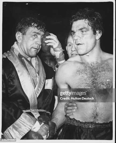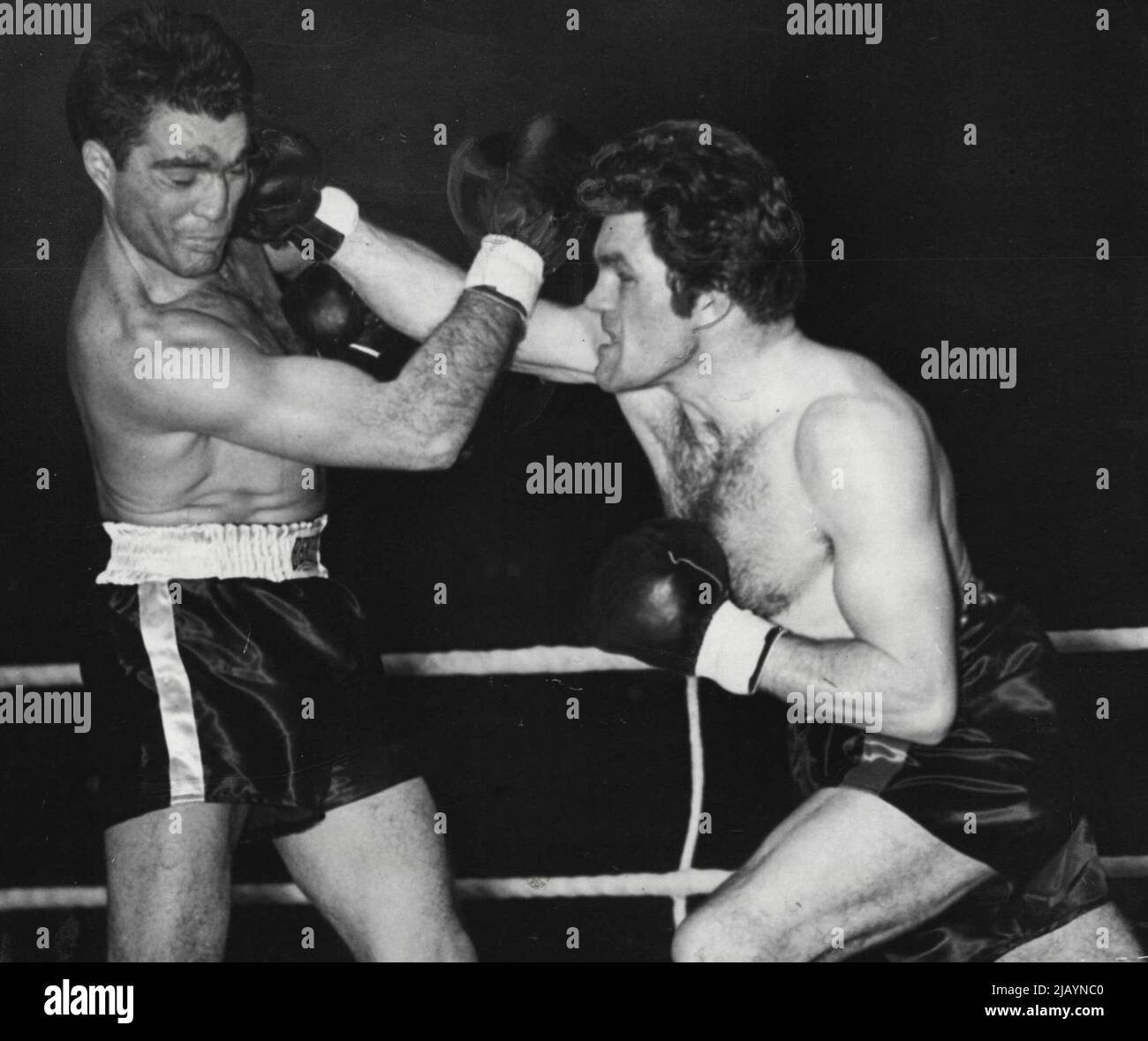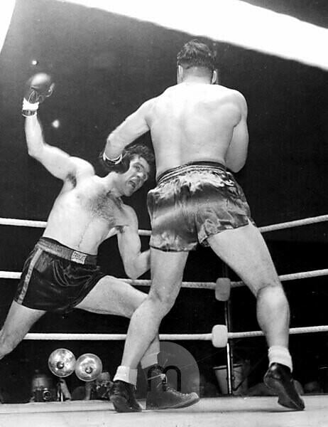 Great image from Howard Winstone vs Derry Treanor, Winstone stopped Treanor in the 14th round to defend his British featherweight title.