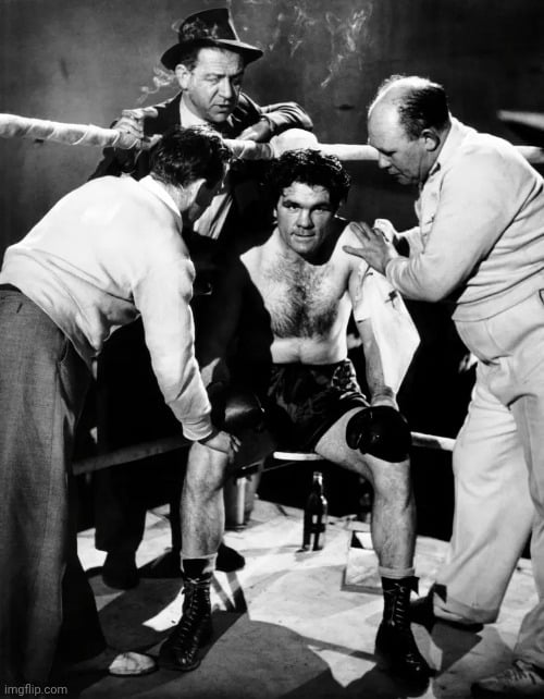 Freddie Mills sitting in his corner with murder in his eye, great image.
