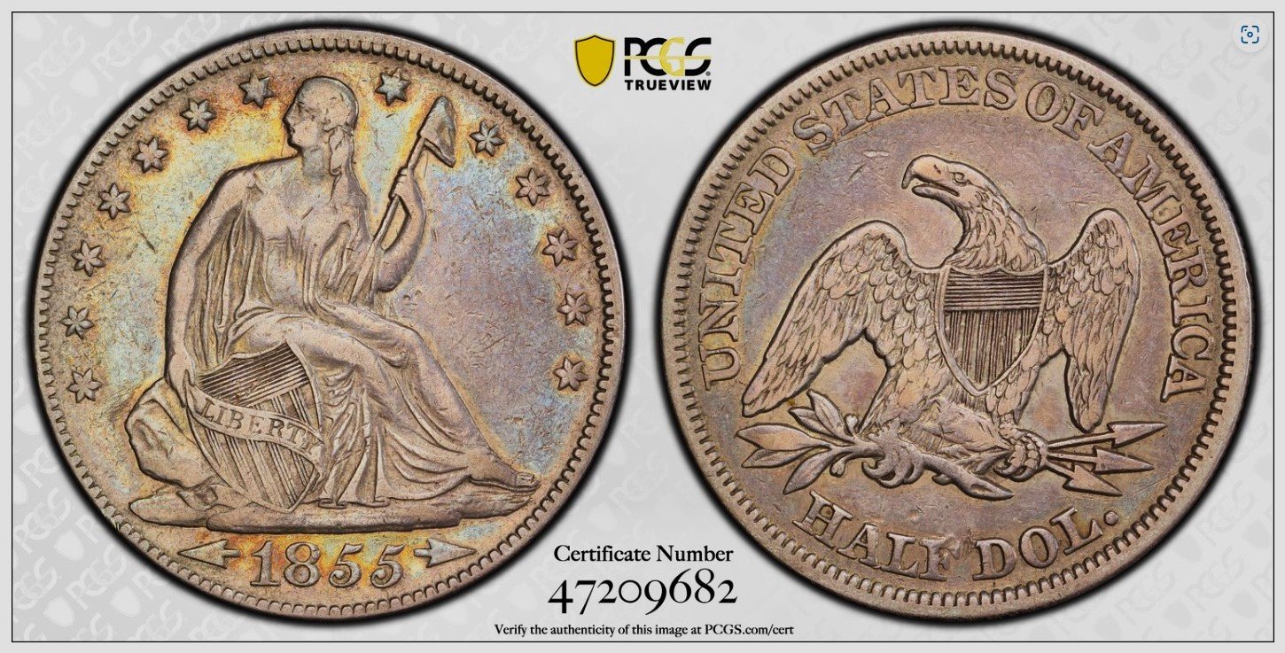 The hobby is not perfectly logical and consistent on this corrosion issue, IMO. Most of the coins in my CAC Hall of Shame are CAC stickered coins with original toning but also have what I feel is significant corrosion. I'll use this newly graded 1853-O to illustrate. I bought it for its crusty look but considered returning it because of a lighter colored band of pitting and corrosion across the obverse right field from the cap to Liberty's foot, and also along the sides of Liberty. I kept it, though, figuring it was cheap, and I could get my money back when I sell it.