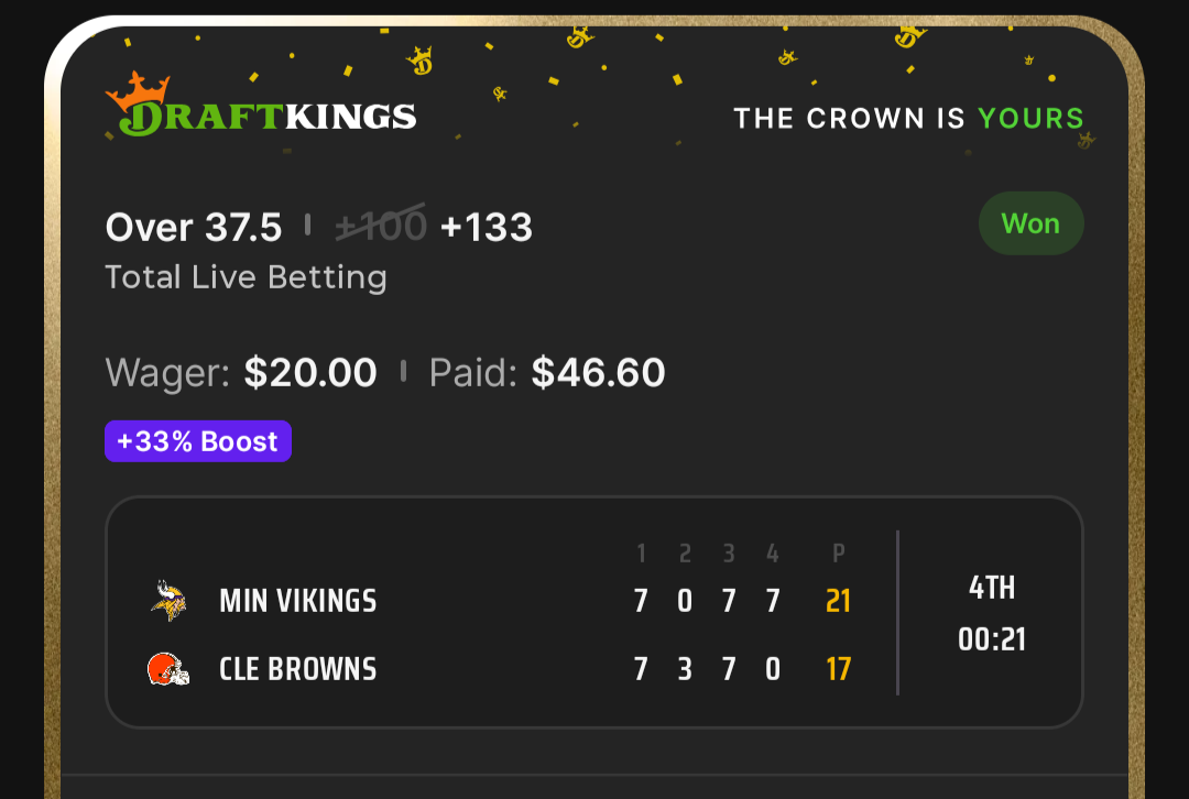 Made it back from the casino and right into NFL action, I couldn't bet at the casino through my app and it saved me money since I was all about Cleveland +3.5