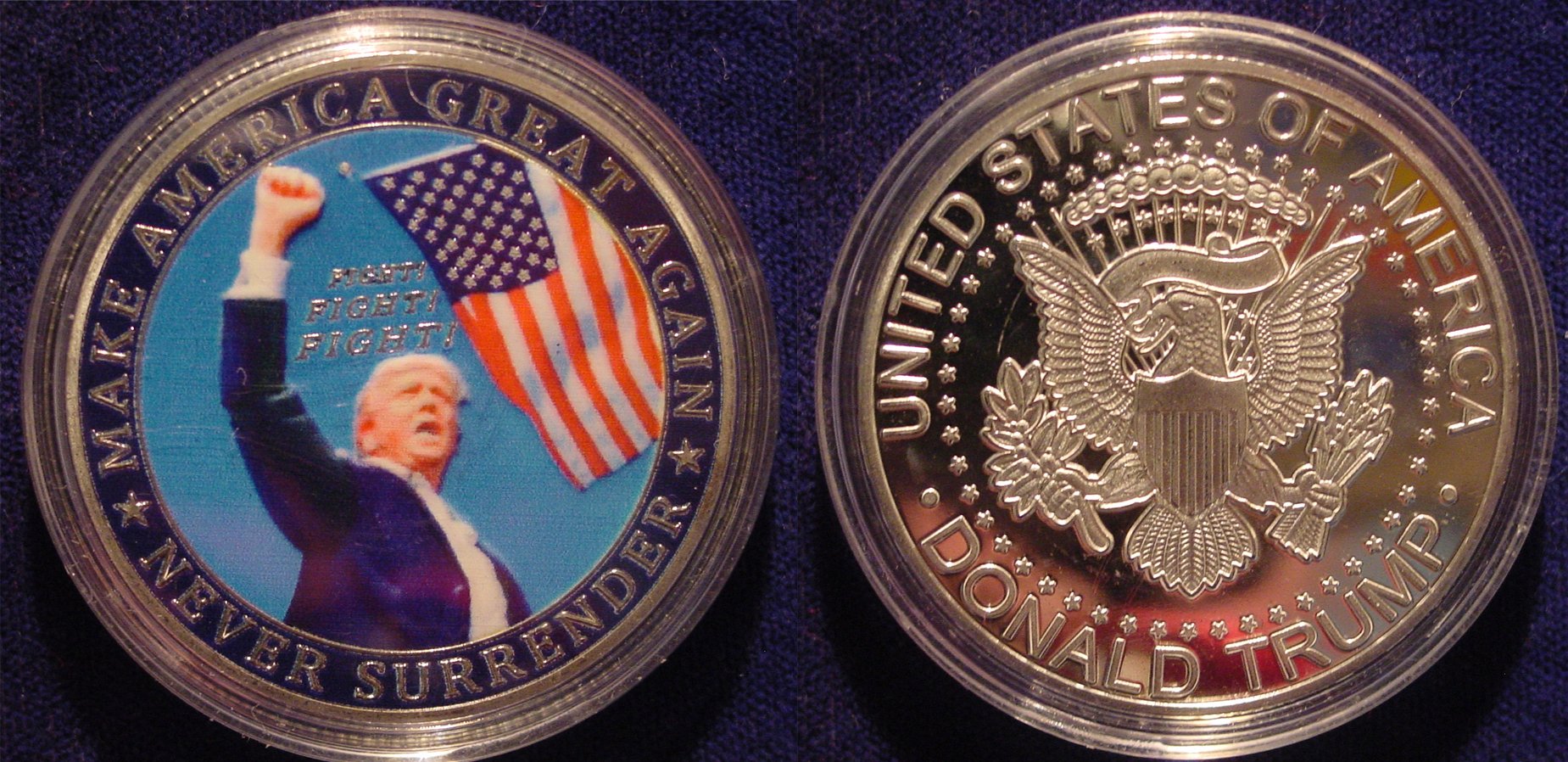 That so called Trump coin looks like it's actually a medal. Where's the denomination, year of issue, In God We Trust, and E Pluribus Unum? Don't forget that non coin collectors will call any metal disc a coin even when it isn't. This design reminds me of the military challenge coins which aren't coins but rather they are medals.
