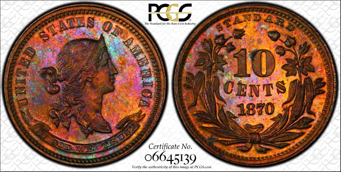 This is one of an almost uncountable infinity of Standard Silver patterns, albeit in copper. I think the actual coin is prettier than the TrueView. Regardless, its graded PR64 RB.