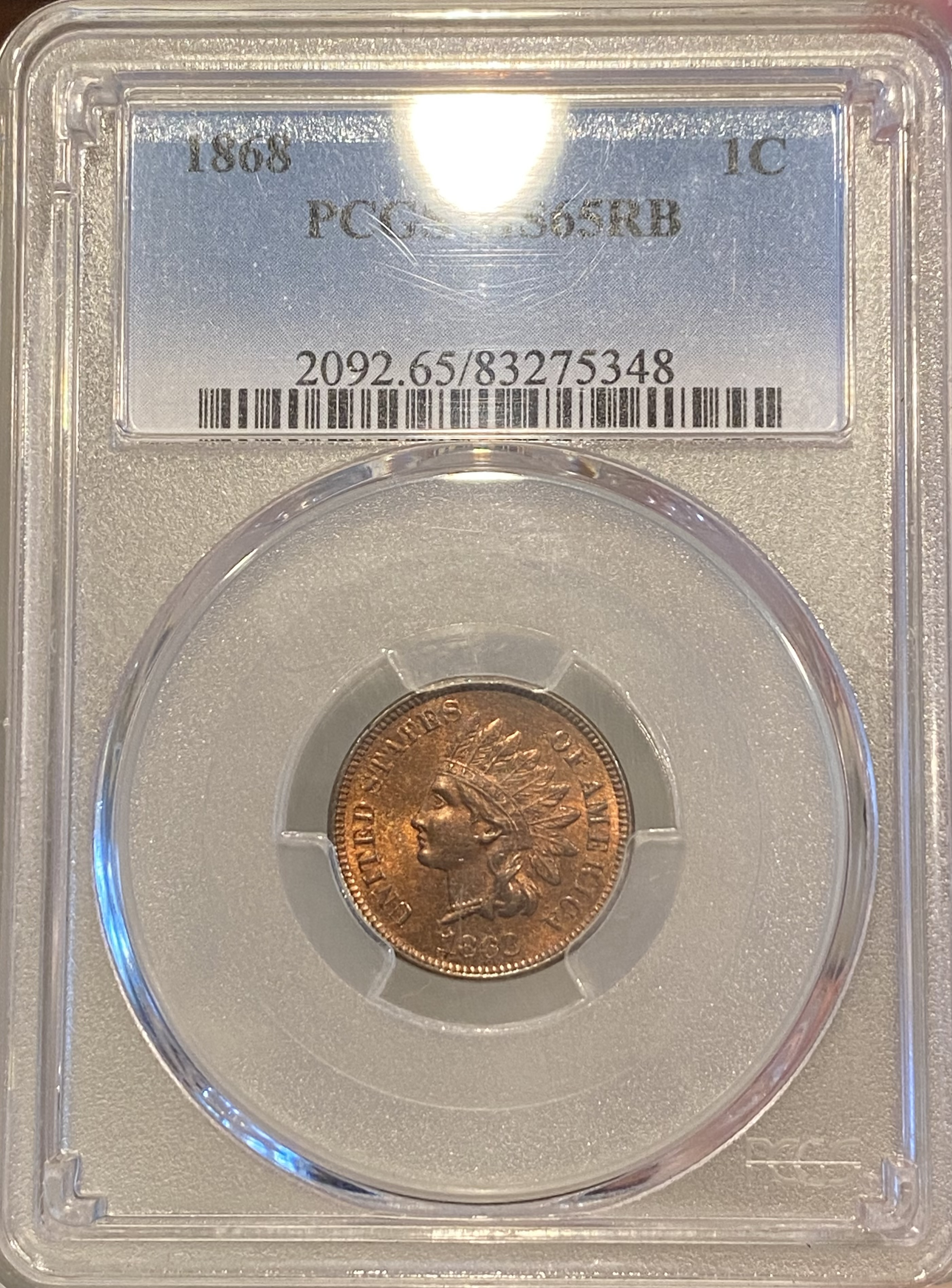 1909 CONECA VDDR-064. Formerly in a NGC 65 R&B holder. It's at PCGS now (Cracked out). Given the marks on the rev and what seems a dislike by PCGS for mixed alloy cents - I will consider myself lucky if I get a 63 R&B and not another Questionable Color slab.