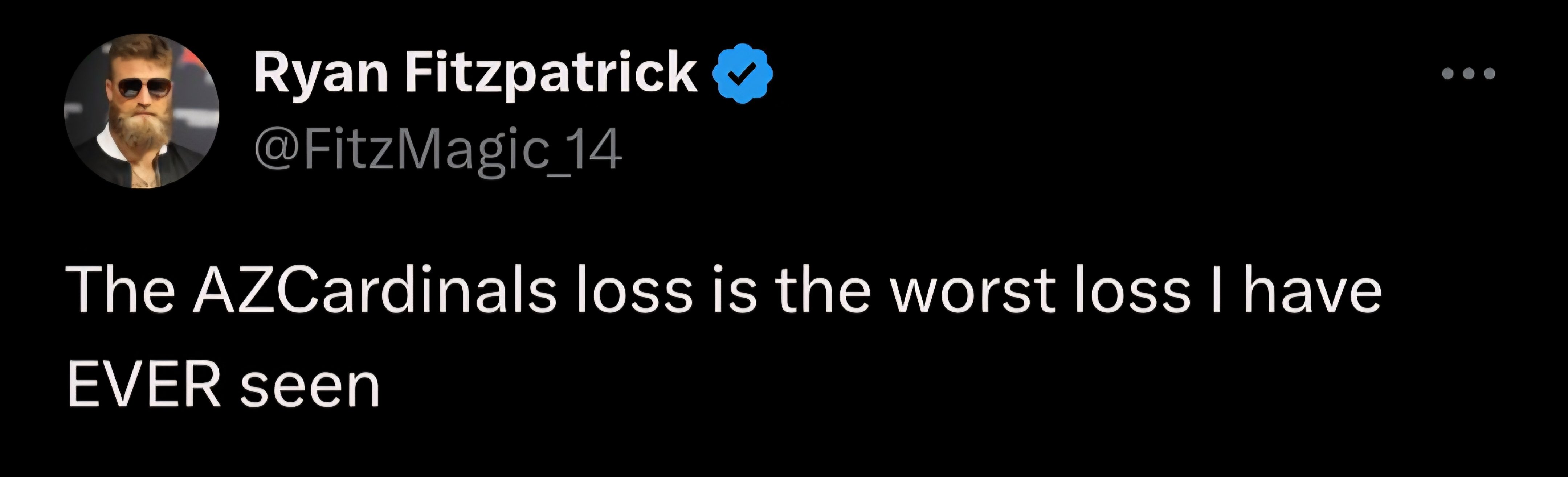 Arizona and Philadelphia doing Arizona and Philadelphia things. Philly finally got bit by not putting a team away. Arizona? You just had to watch the worst team in the NFL look like the Patriots dynasty in the second half.