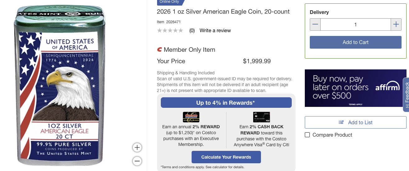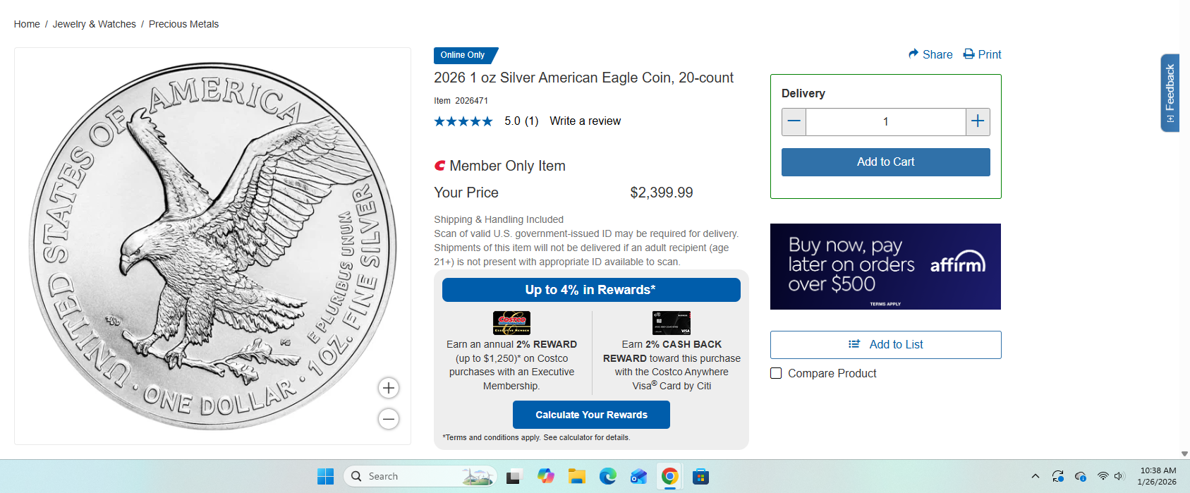 Costco sold out all the silver. Looks like it might has a hard time to restore it fast enough to sell again. This tells you that many regular shoppers buy silver bars from costco.