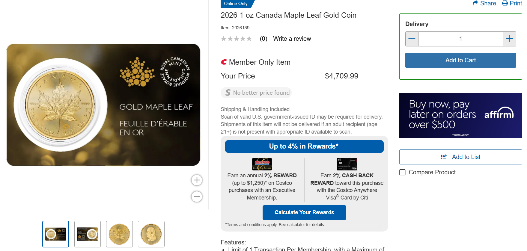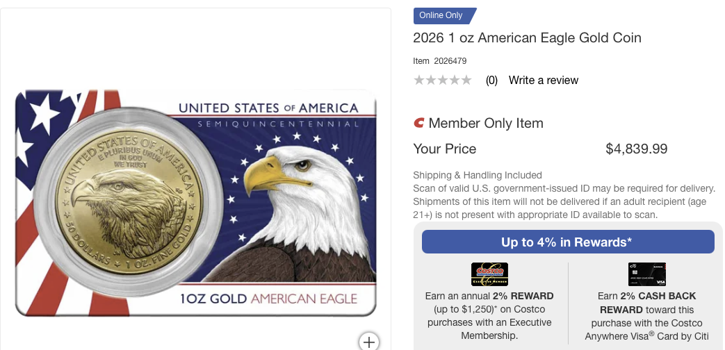 Eagles and Buffalos at spot if you are eligible and factor in 4% rewards/points. And also if you can stomach paying $5k/ozT for the Au. Wasn't long ago and $2k was hard to stomach. Crazy times. THKS!