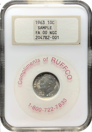 Ruffco was a company started by Howard Ruff in probably the 1970s or 1980s he had a newsletter that was very popular. So I think the point of the slab and sticker was more about hard money than numismatics. The coin is not graded because it's a sample, and my guess is it's worth more with the sticker on the slab than without it.
