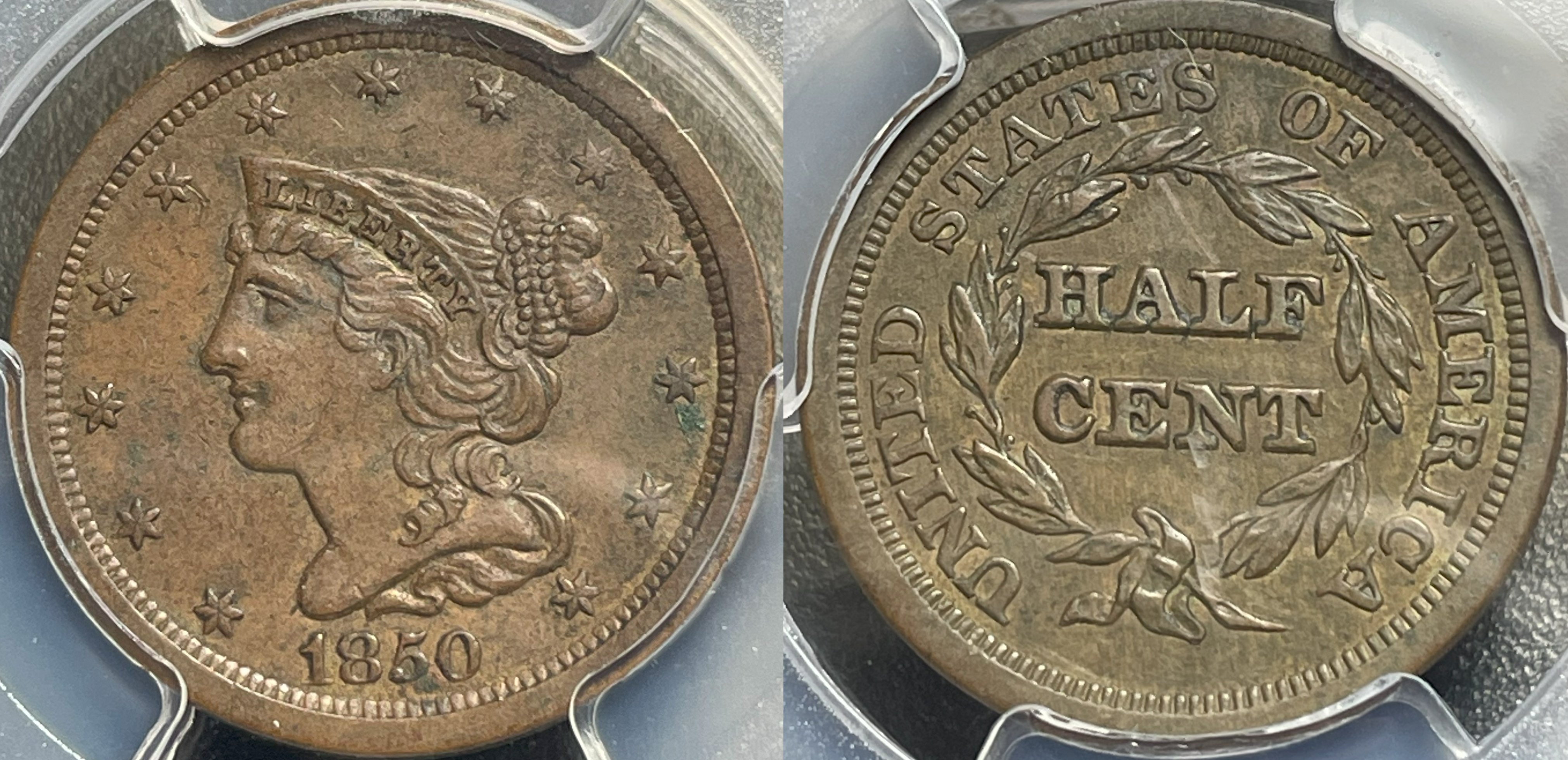 Since I have no images of a 1950, or even an 1850, I went back 120 years before your birth year with this one. But hey, at least there's a"50" on the reverse!