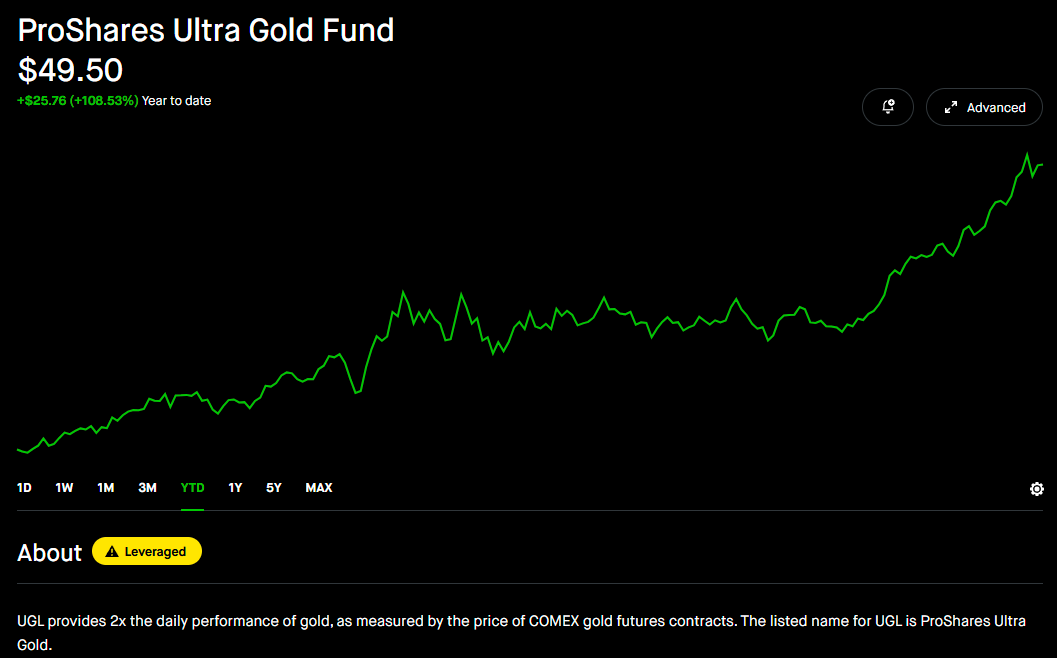 The AGQ and UGL strategy is an idea that you should reconsider. You simply will not enhance any gains over the longer term in a leveraged fund even if the underlying asset generally increases in price. Short term, days to weeks, maybe, but not longer due to volatility drag. Better to just follow Yukon Cornelius and buy SLV and GLD. In particular, since silver price is quite volatile, ACQ performance is horrendous. While UGL chart isn't nearly as bad long term, it hasn't outperformed GLD over any significant length of time. If you are in and out quickly like Blitzen, sure , but I'm sure Donner isn't putting Rudolph's inheritance into either ACQ or UGL.