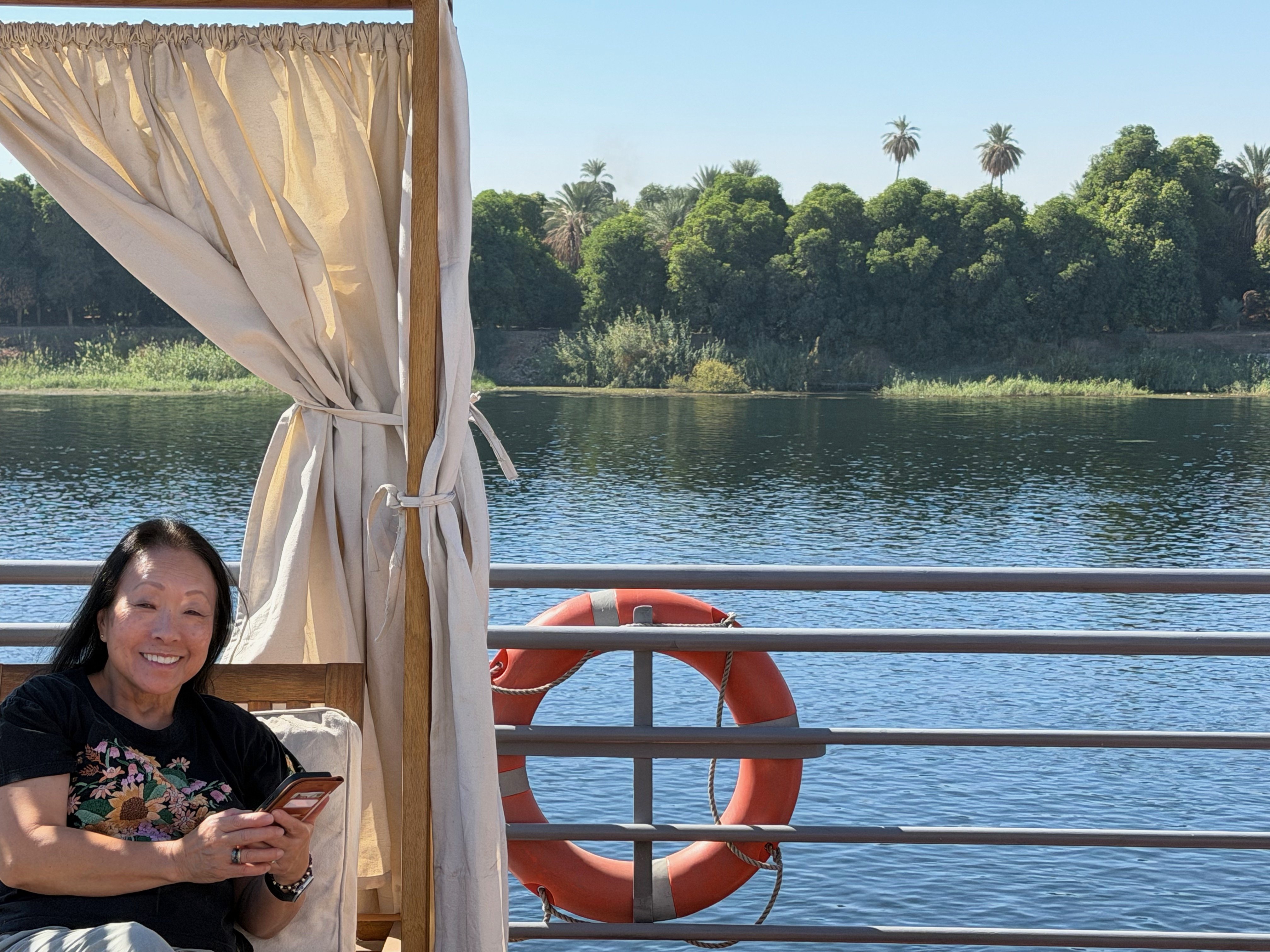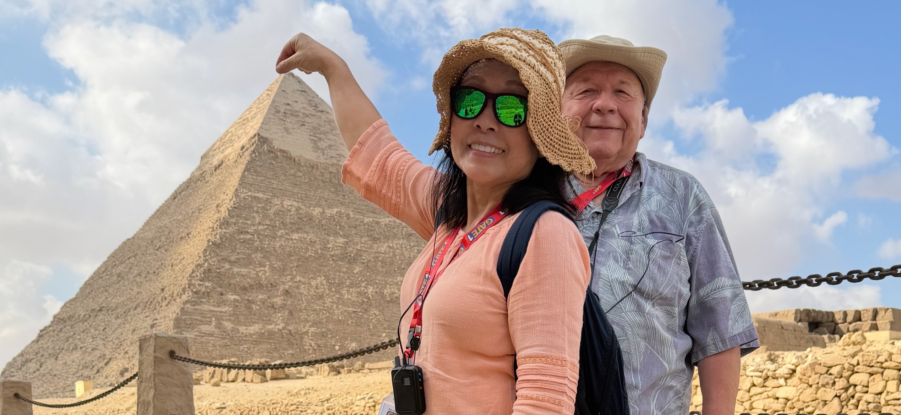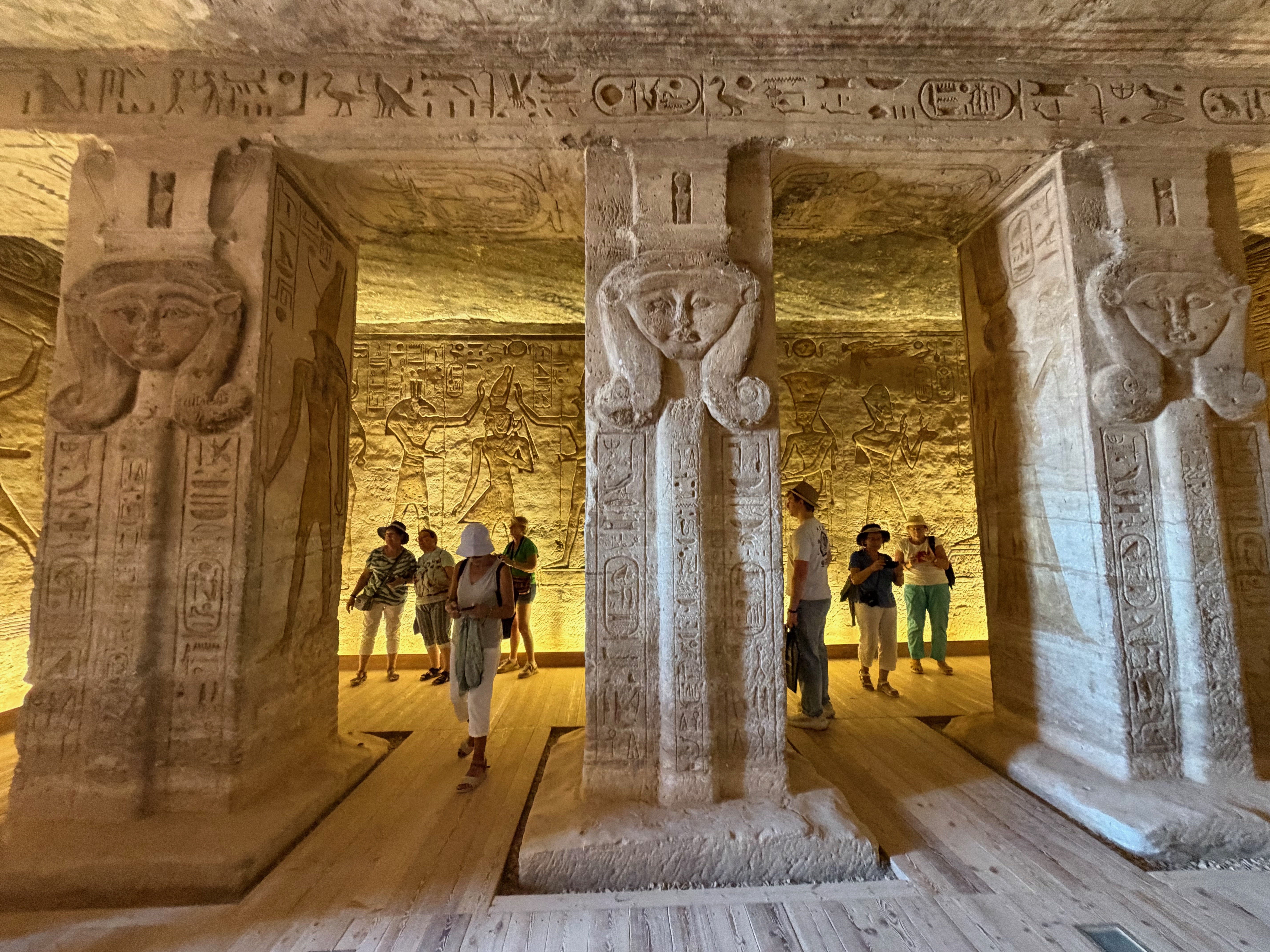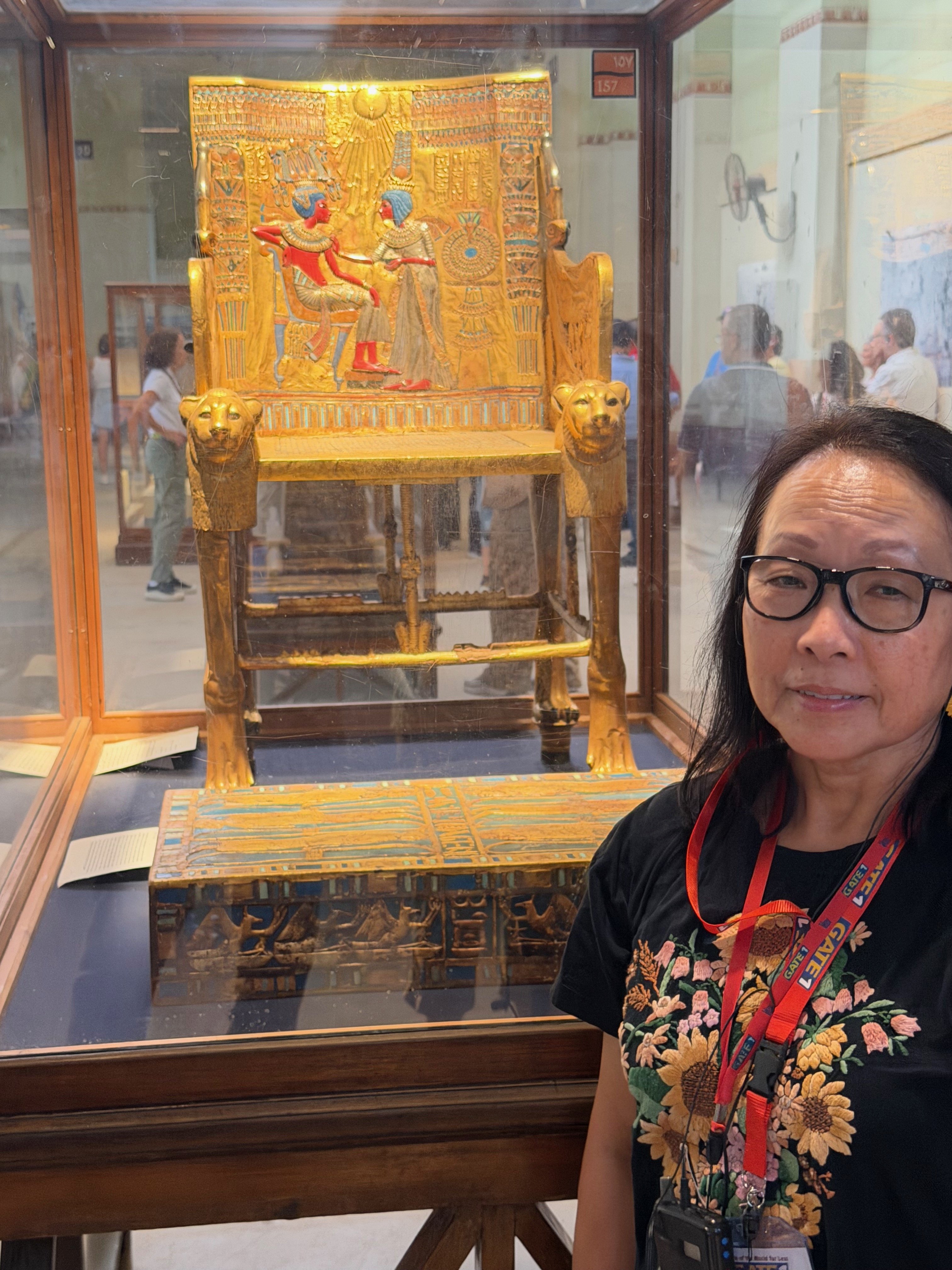 The journey included a Nile River cruise from Luxor to Aswan and travel by bus to Abu Simbel and Hurghada on the Red Sea. Visited were all three of Egypt's major museums: the original Egyptian Museum of Antiquities in Cairo where King Tut's Gold Death Mask and golden throne continue to be displayed, The Museum of Egyptian Civilization where the mummies of all of the Pharaohs other than King Tut have been preserved, and the new Great Egyptian Museum (GEM).