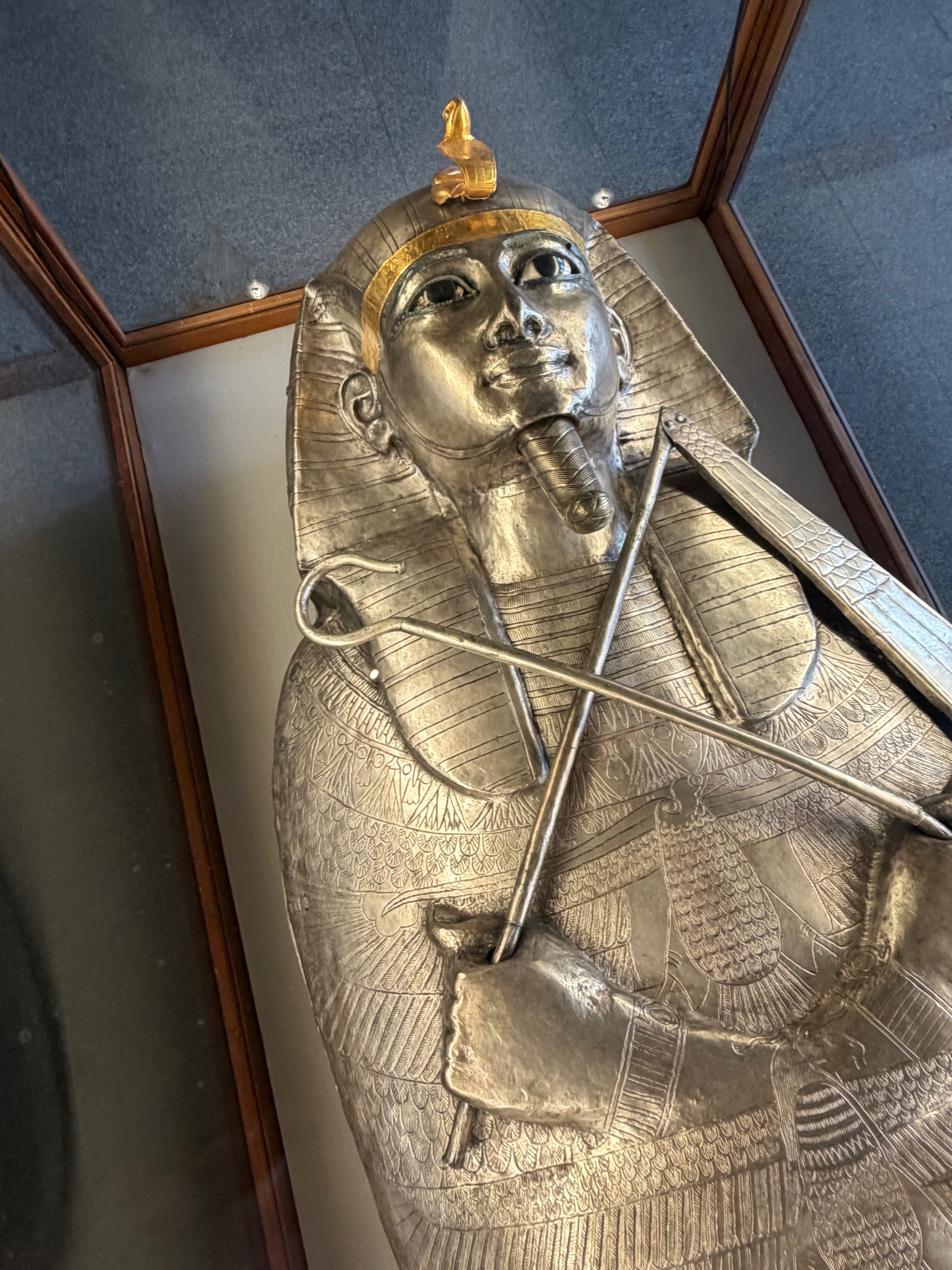 Gold Funeral Mask at Cairo museum and coffin similar to King Tut's:
