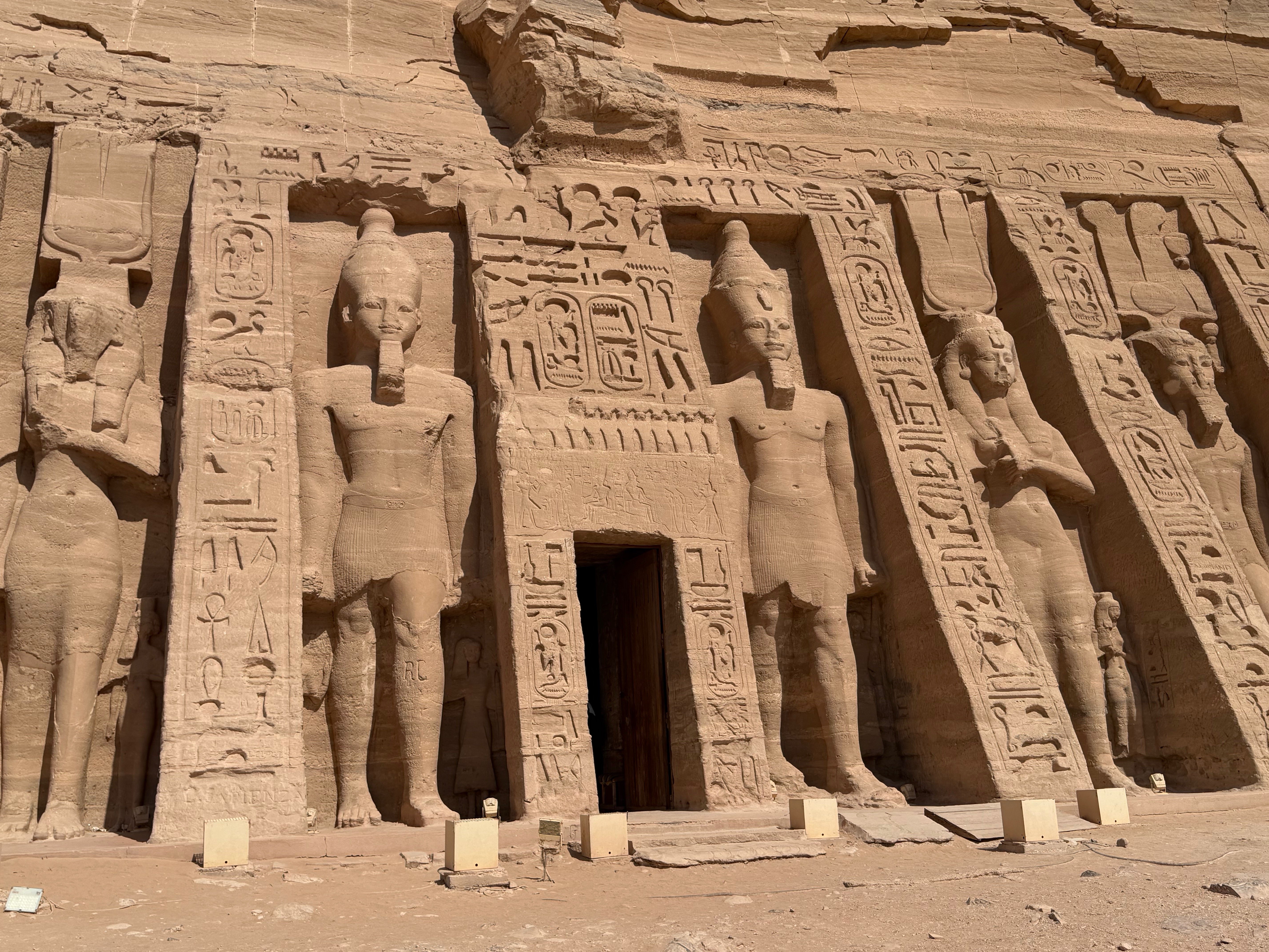Abu SimbEl is the location of two temples that were rescued from immersion in the waters of Lake Nasser that was created by building of the Aswan Dam in the 1960s. It was a world wide engineering effort that allowed the temples to be moved up onto higher ground along with the creation of two mountains to contain them.