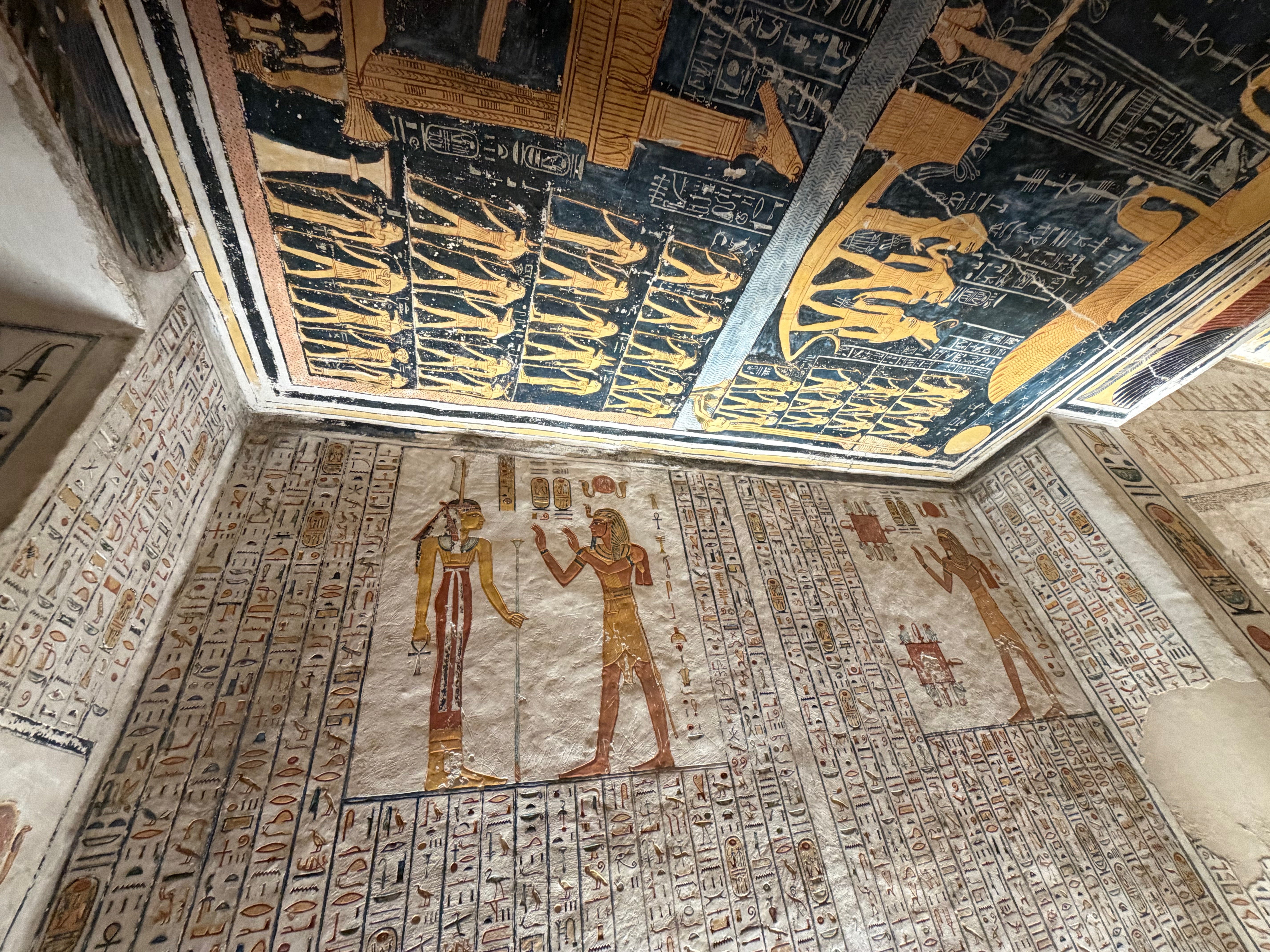 A visit to the Valley of the Kings near Luxor, or Thebes as it was ancient known, included capturing in video King Tut's tomb along with his mummy housed there. Among the other tombs visited there was that of King Seth I who lived 90 years after King Tut and has the most impressively decorated tomb in the valley with its preserved colored walls and astronomical ceiling.