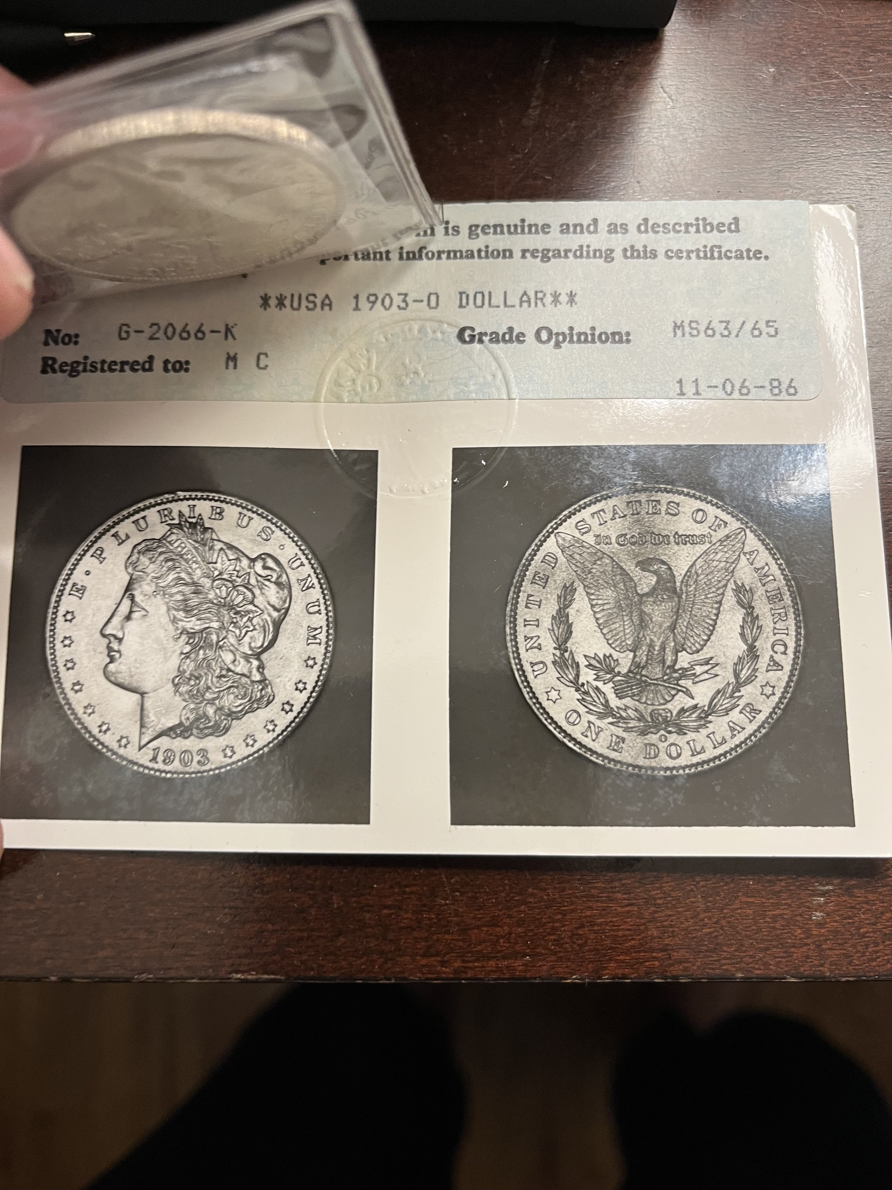 I was actively collecting coins when ANACS with the photo certificates was the only third-party grading service available. Frequently, when a coin was sold with the photo certificate, the original owner would use a magic marker to neatly draw a line through his name to hide his name on the certificate for security reasons.