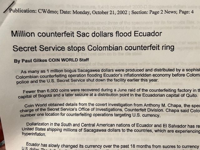 “2001-P Sacagawea Dollar - Counterfeiters Gather 'Round.”